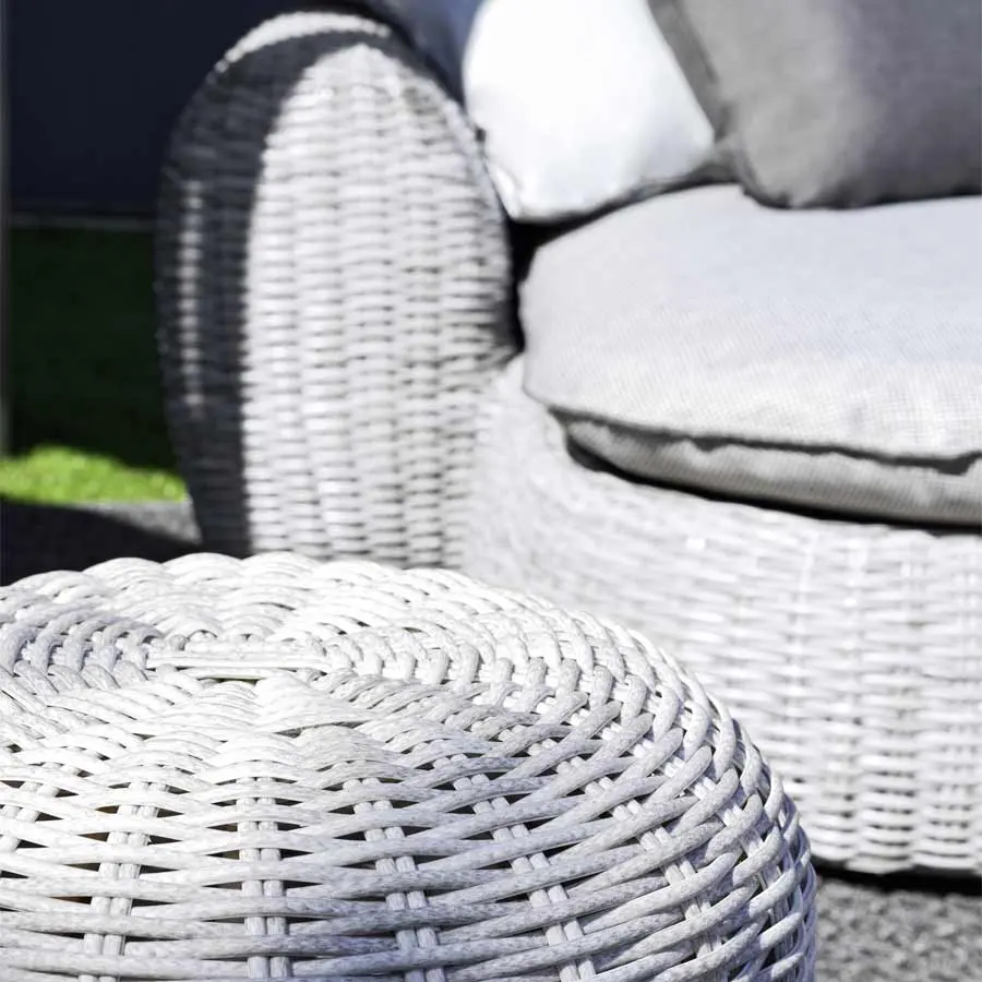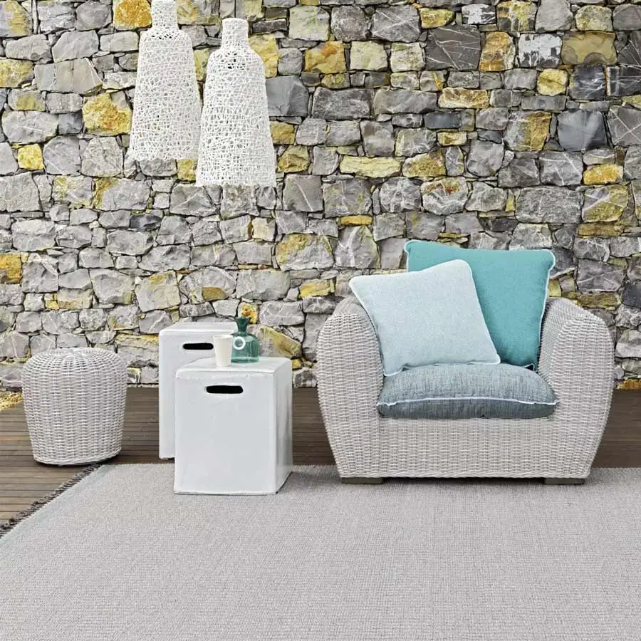Las formas suaves y acogedoras y los volúmenes consistentes caracterizan al sillón Panda 05, que tiene una estructura y patas de aluminio y entramado de fibra sintética de polietileno Panda Resin blanca/gris. Fibras sintéticas de última generación, diseñadas para resistir al agua y a la luz y para conservar las cualidades técnicas y cromáticas a lo largo del tiempo, mantienen un aspecto muy natural y duradero. El asiento y el respaldo están embellecidos por cojines de gran tamaño desenfundables, para un marcado confort.