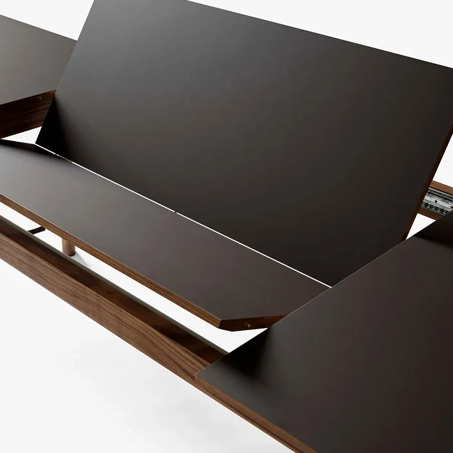 Definida por su encimera extensible, está disponible en una hermosa colección de maderas, combinadas con un tablero de laminado liso para dar más durabilidad. El diseño sencillo y acogedor de la mesa puede combinarse en espacios interiores de todos los estilos. Disponible en varias medidas