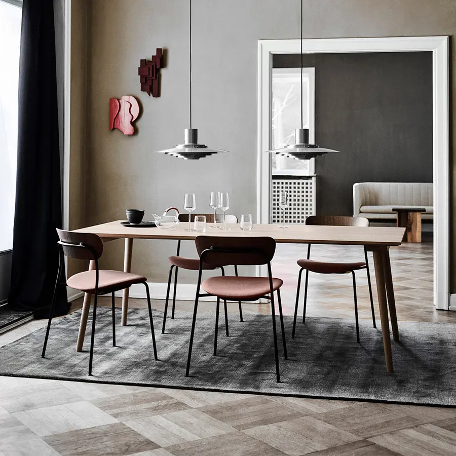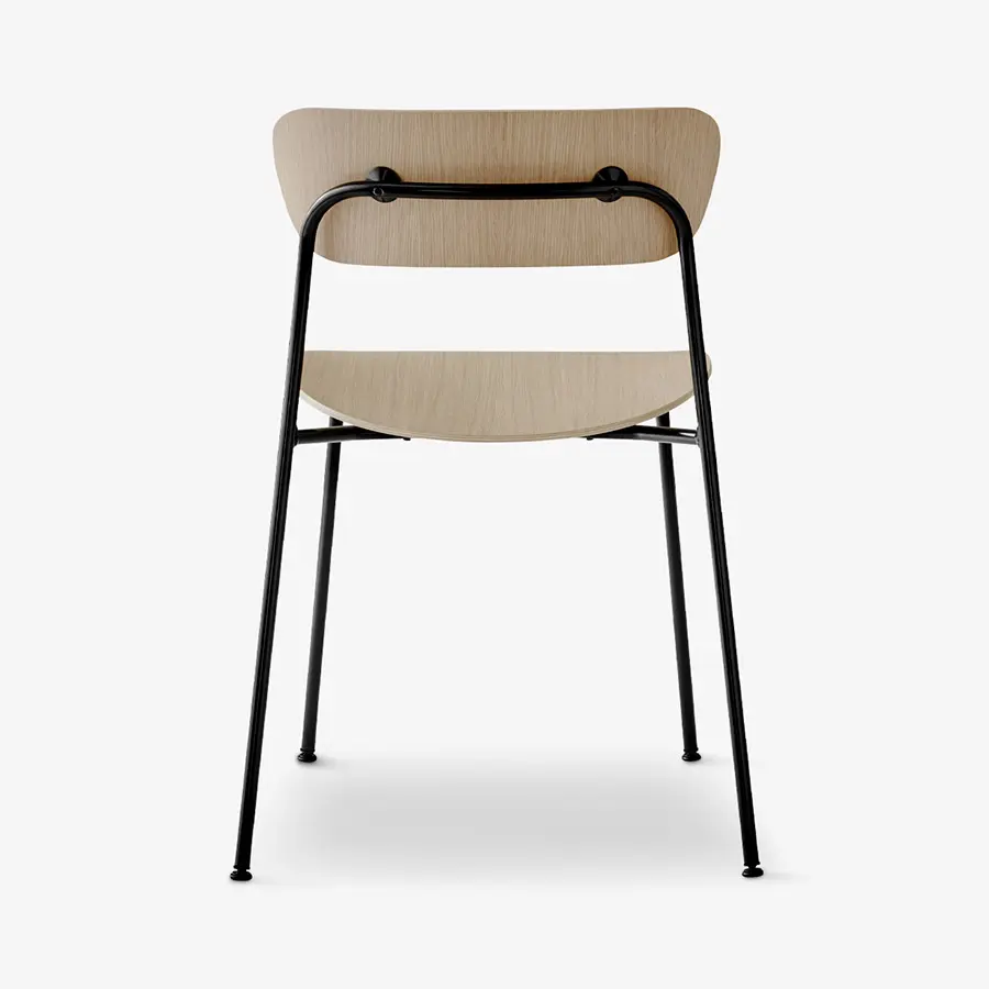 Originalmente diseñada para el Pabellón Langelinie situado en los terrenos del Kastellet en Copenhague, la silla Pavilion está construida para ser duradera. Con el desafío de crear una silla apilable y fácil de mover, Anderssen & Voll exploraron una silueta suave y curvilínea que le da a la silla Pavilion una apariencia simple y poética. Una silla de comedor ligera y elegante disponible en roble lacado negro o nogal lacado.