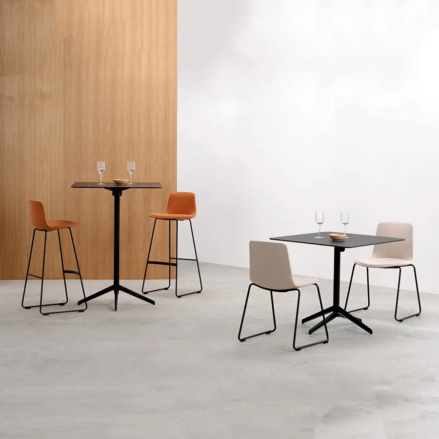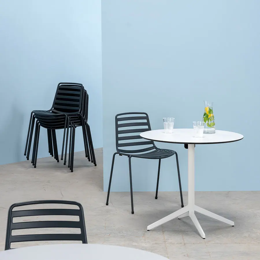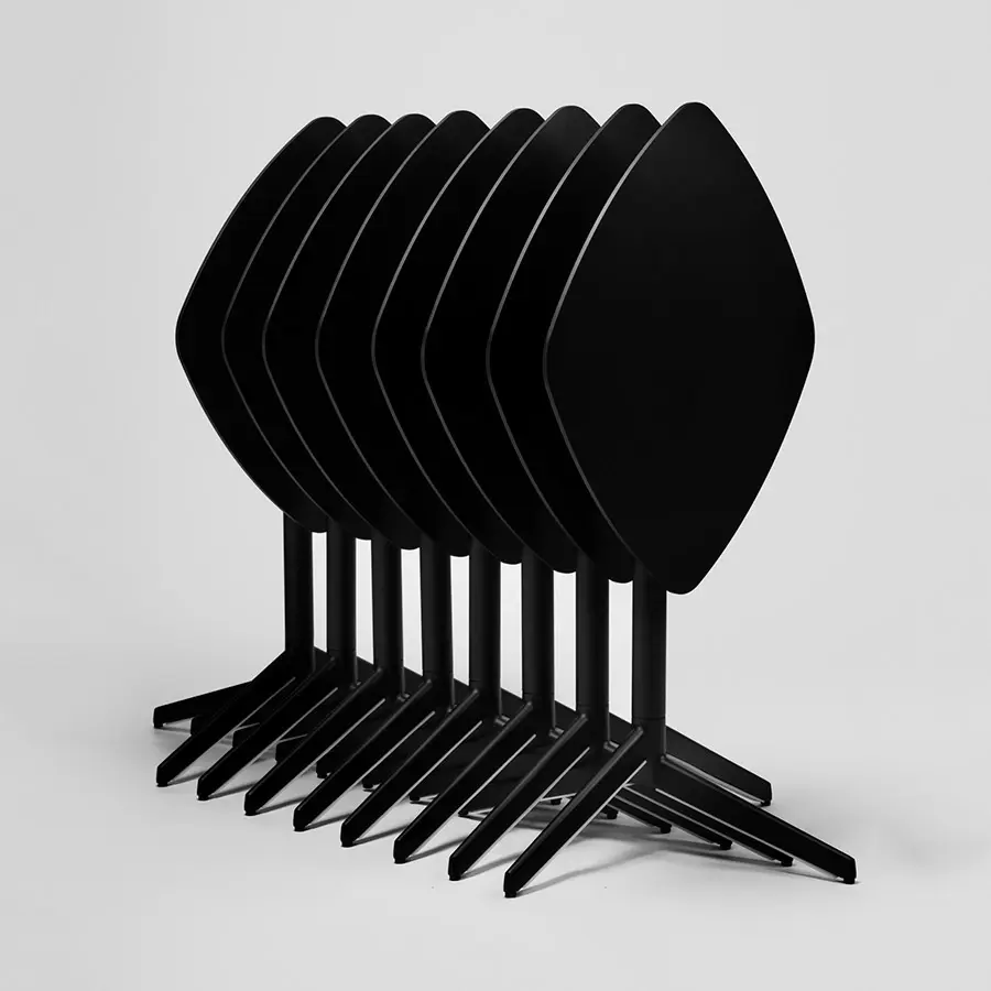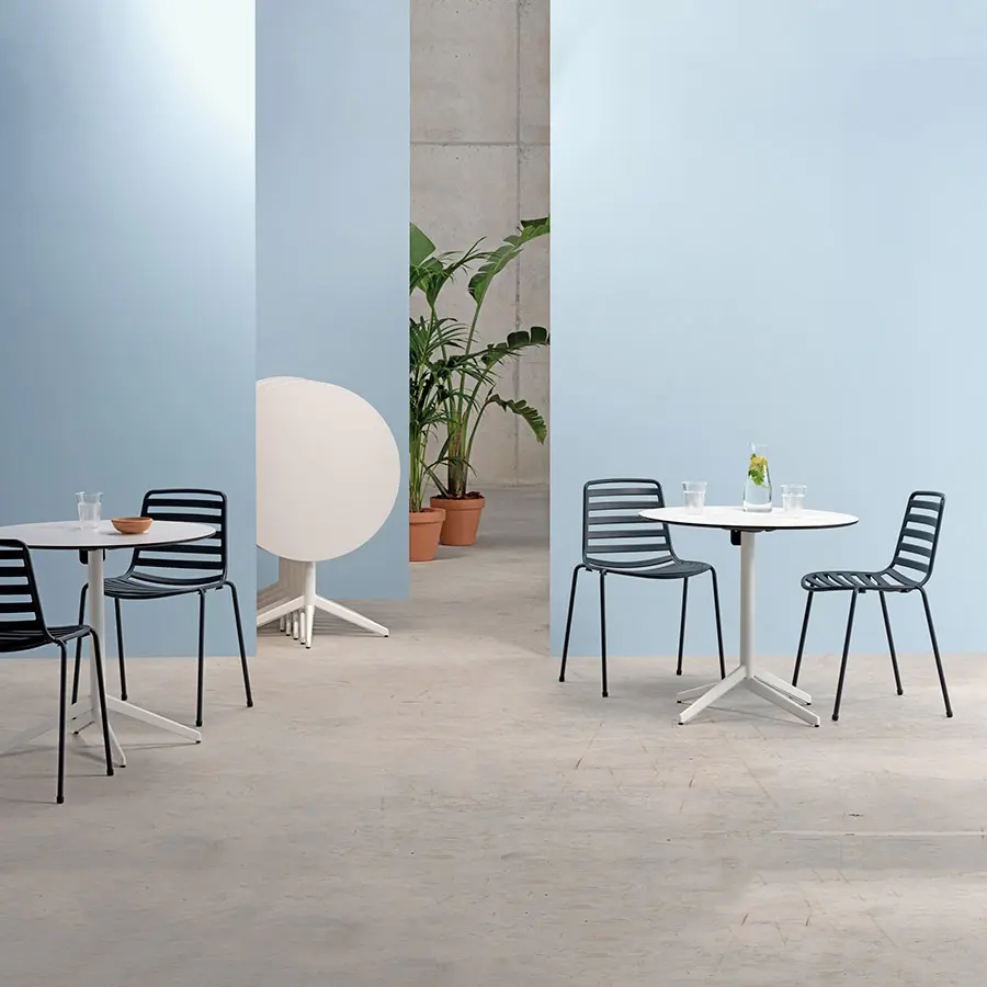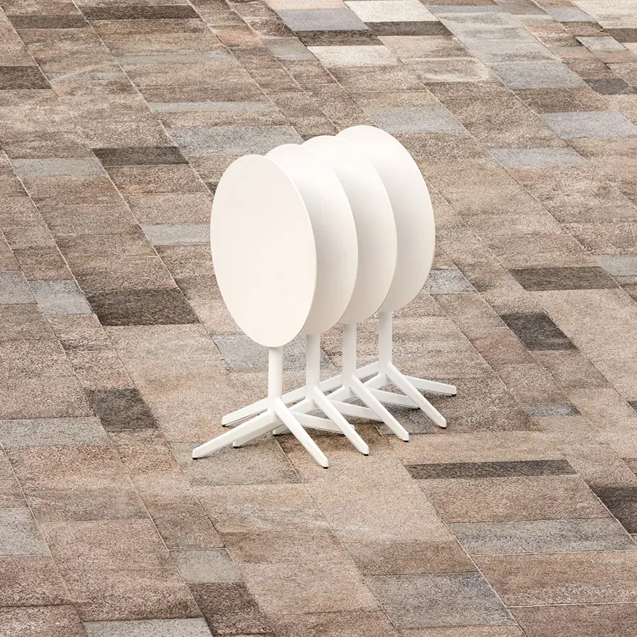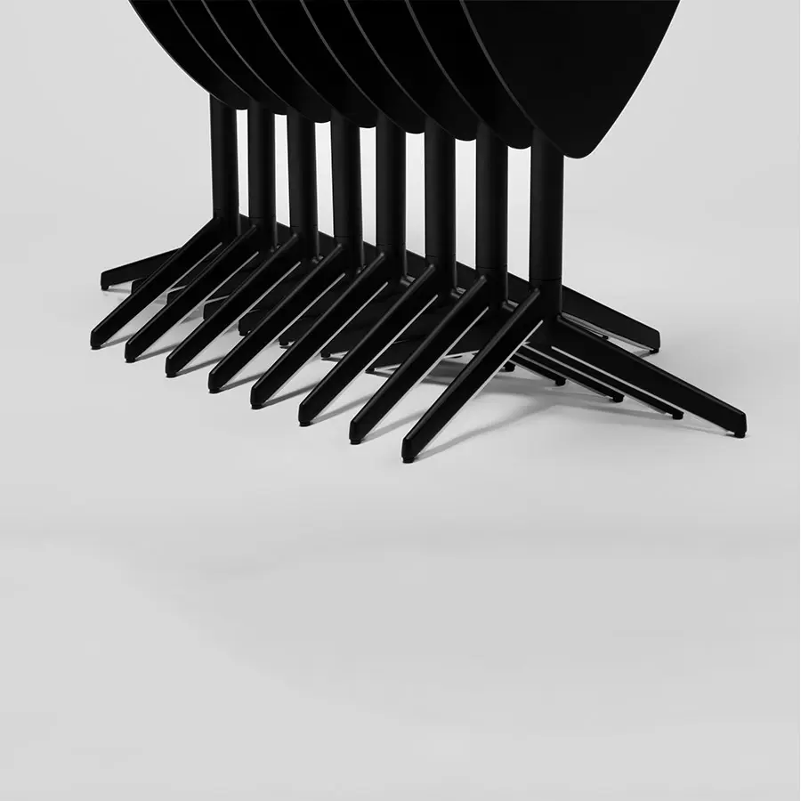 La mesa Pile ofrece un mecanismo de plegado que permite abatir las mesas de una manera muy intuitiva. Su estructura de 4 radios de aluminio pulida o lacada en cualquiera de nuestros colores está diseñada para un fácil apilado. Todo ello convierte Pile en la opción ideal para entornos dinámicos tanto en interiores como en exteriores. Además, está disponible en dos alturas y con encimeras redondas, cuadradas y cuadroides con distintos acabados.