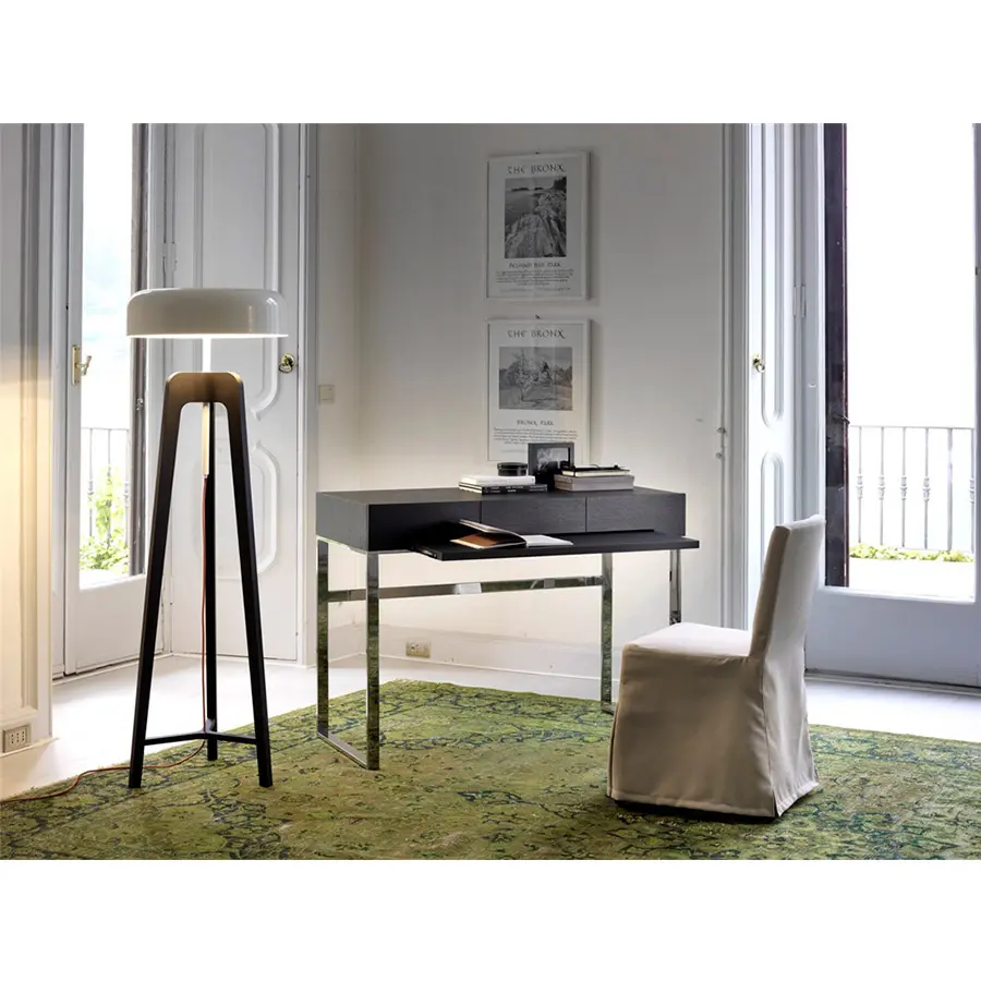 Lámpara de pie en nogal canaletta o fresno macizo y pantalla de hojalata.