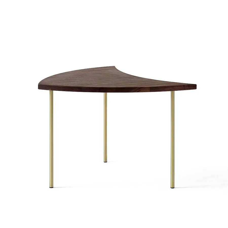 Producida por primera vez en 1953, la elegante mesa se inspira en el diseño lúdico y geométrico de un juguete de molinete. Es una pieza versátil que tiene la capacidad de agruparse para formar una mesa más grande, pudiendo convertirse en una mesa de centro redonda o alargada y rectangular. La mesa está disponible en roble natural o nogal, y las patas son de latón.