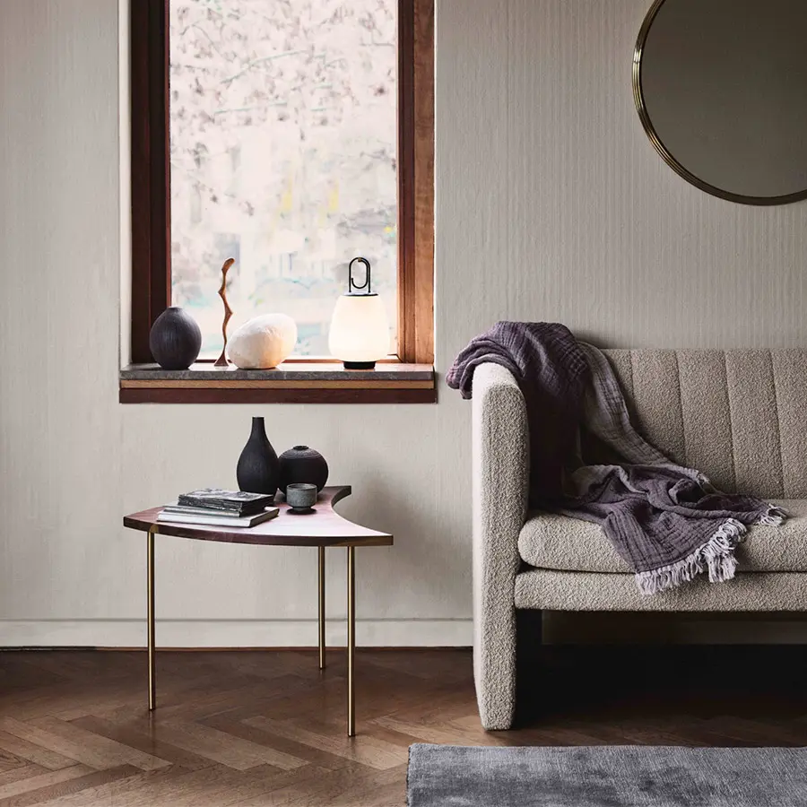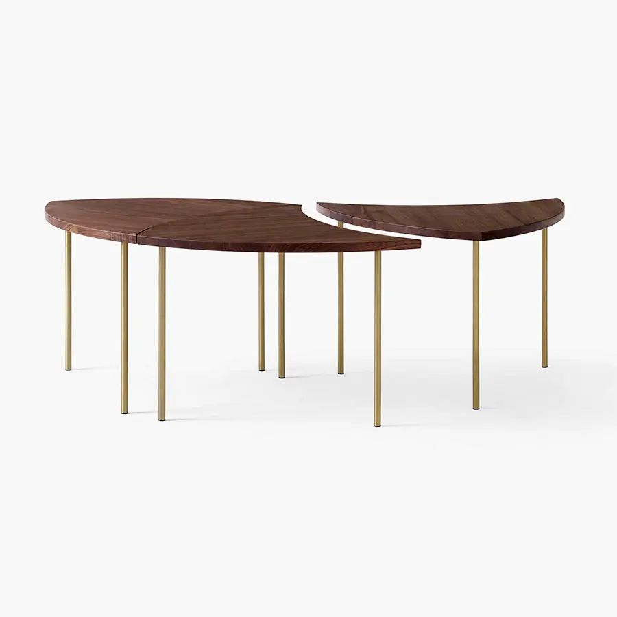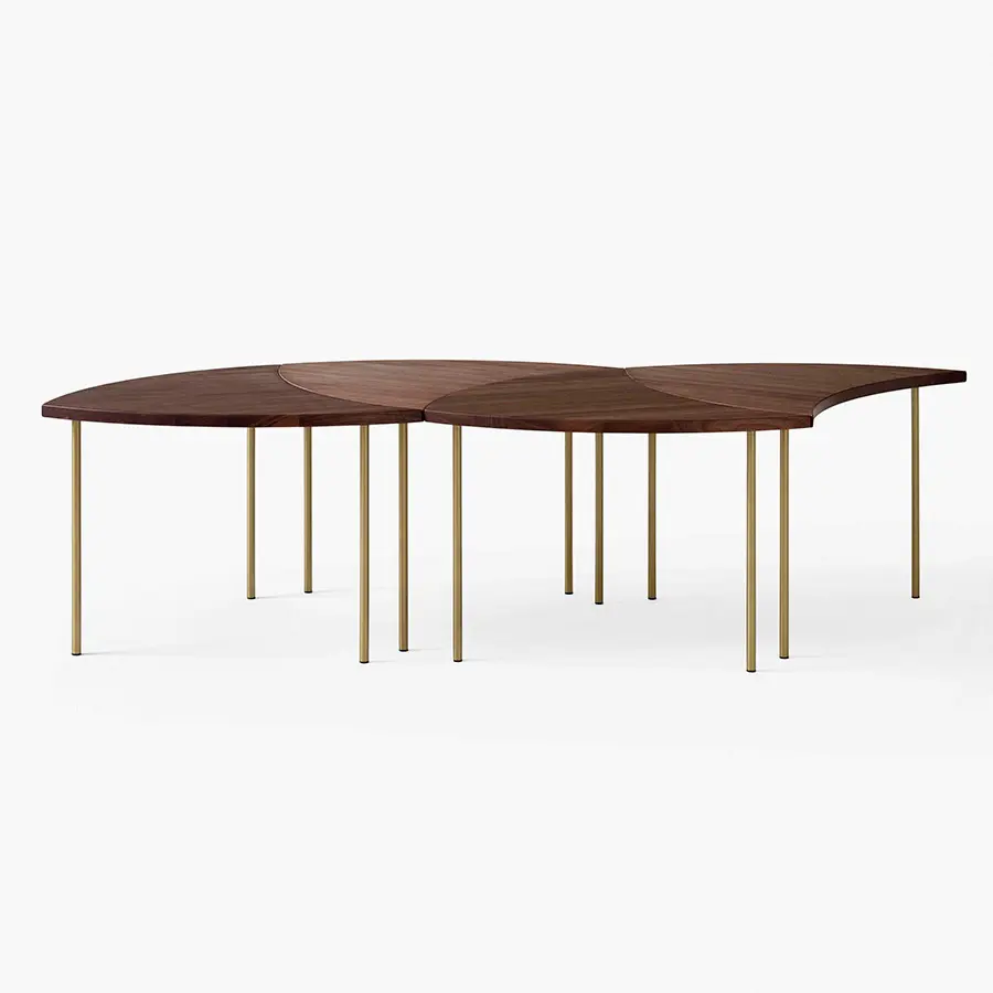 Diseñada por Hvidt & Molgaard, la mesa modular Pinwheel es una pieza versátil que funciona individualmente o en conjunto.