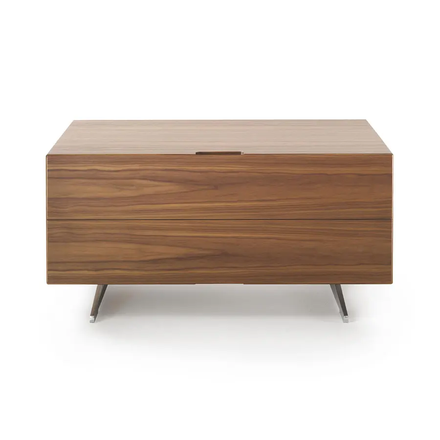 La colección de contenedores Piuma combina el rigor de la forma con la rica expresividad de la madera. La estudiada simplicidad del diseño es un contrapunto a la elección de la madera contrachapada hecha de maderas raras y preciosas, como la pluma de caoba, el ébano amara, el nogal y la ceniza, que se ofrecen en varios tonos. La ausencia de tiradores, que se ubican directamente sobre la estructura con ranuras talladas con un corte de 45°, acentúan la línea esbelta y esencial de este mueble que se presta a ser colocado en cualquier ambiente y es fácil de combinar con todas las mesas, sillas, sofás y sillones de la colección Flexform.
