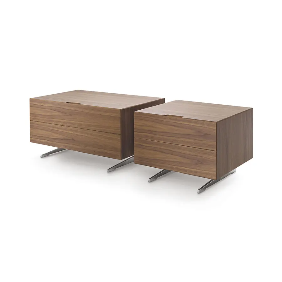 La colección de contenedores Piuma combina el rigor de la forma con la rica expresividad de la madera. La estudiada simplicidad del diseño es un contrapunto a la elección de la madera contrachapada hecha de maderas raras y preciosas, como la pluma de caoba, el ébano amara, el nogal y la ceniza, que se ofrecen en varios tonos. La ausencia de tiradores, que se ubican directamente sobre la estructura con ranuras talladas con un corte de 45°, acentúan la línea esbelta y esencial de este mueble que se presta a ser colocado en cualquier ambiente y es fácil de combinar con todas las mesas, sillas, sofás y sillones de la colección Flexform.