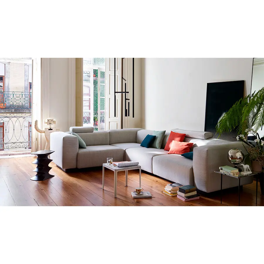 Las Plate Tables (2004) de Jasper Morrison presentan una acertada mezcla de sutiles contornos y bordes bien definidos. Pueden agruparse para formar distintas configuraciones de mesas de café.