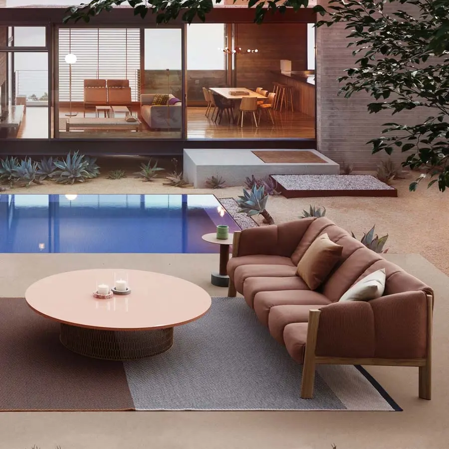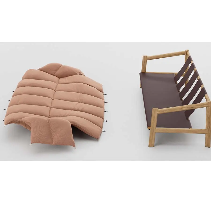 Plumon se basa en el concepto de vestir, en vestir y desvestir muebles. Adoptando un enfoque de sastrería, la nueva familia presenta un espíritu brasileño característico, que vive en muebles abundantes, espaciosos y cómodos, algo evocadores de paisajes y culturas distantes. Una estructura ligera, sobre la que se ‘amarra’, envuelto un vestido sastre y acolchado. Este acolchado acanalado, caracterizado por pespuntes, además de ser una figura estética, cumple con la comodidad del producto.