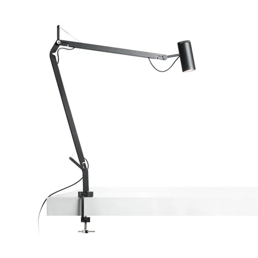 La fluidez de sus movimientos y su perfecta estabilidad hacen de este flexo un punto de luz que se puede mover alrededor de la mesa sin apenas ocupar espacio. Esta lámpara articulada incorpora tecnología LED, lo que permite dirigir el haz de luz con precisión.