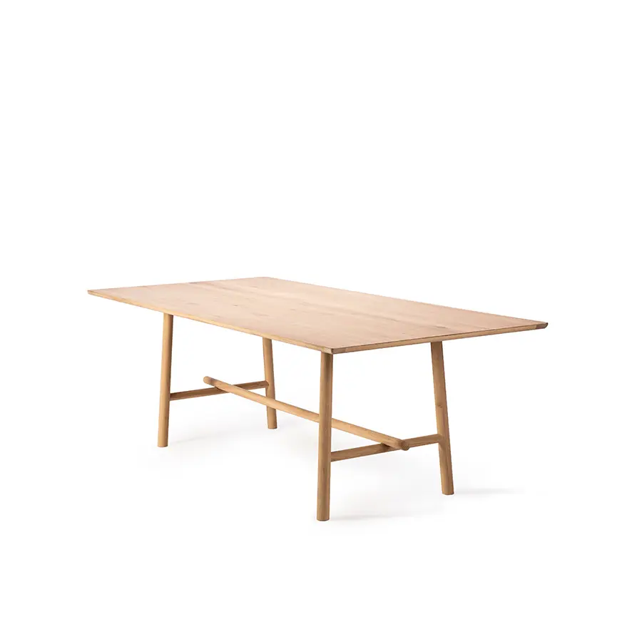 Profile de Alain van Havre tiene una apariencia delicada y suave. Caracterizada por su ligereza visual, cada parte de la mesa parece descansar suavemente sobre otra parte. Sin embargo, la suma de todas las partes equivale a una estructura muy sólida. Disponible en madera maciza de roble.