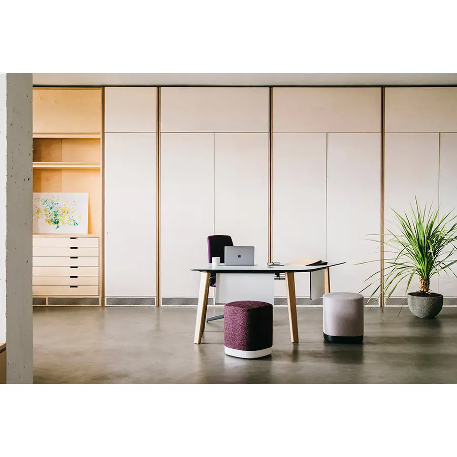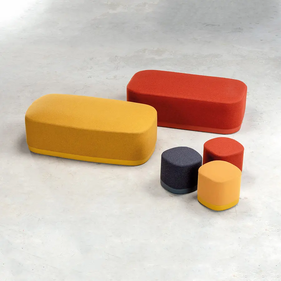 Con una amplia variedad de tapicerías y acabados, Puck es una colección osada y moderna que aporta un toque de color a cualquier espacio. La base está disponible con ruedas para dar dinamismo al asiento, creando una pieza única.