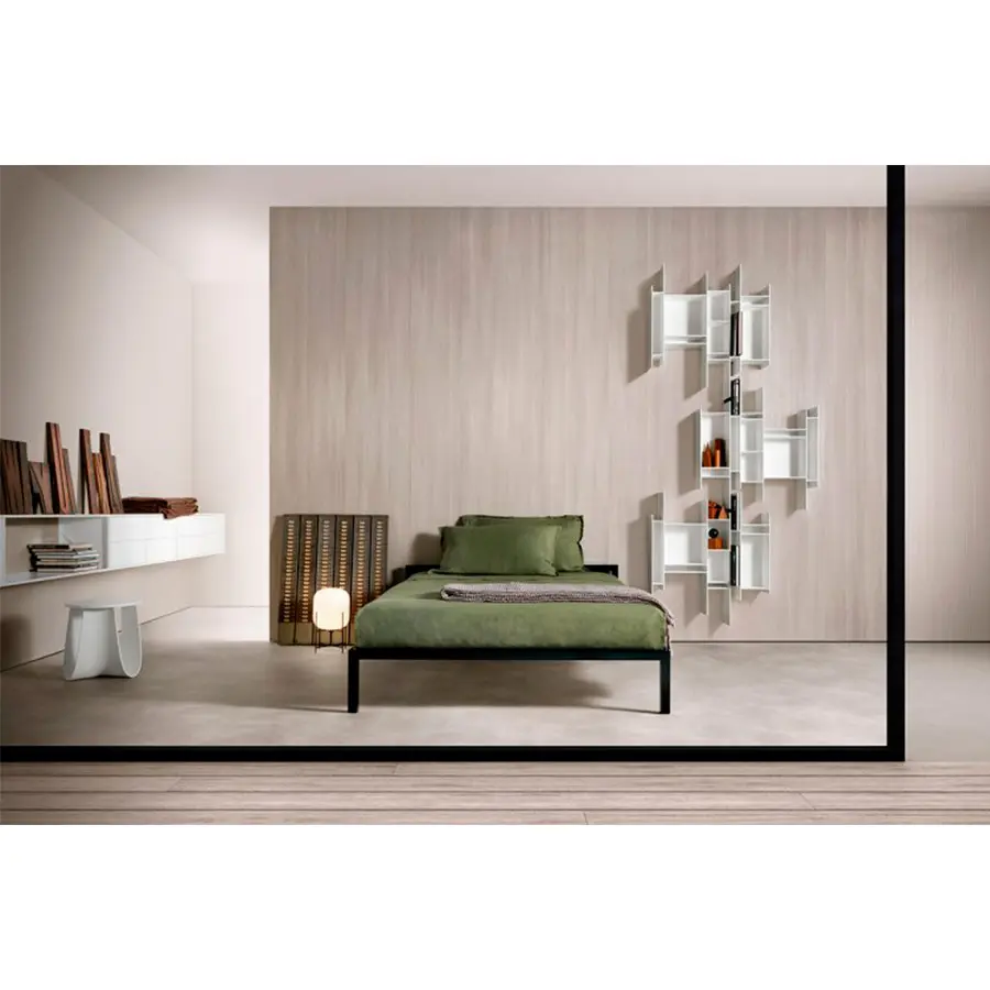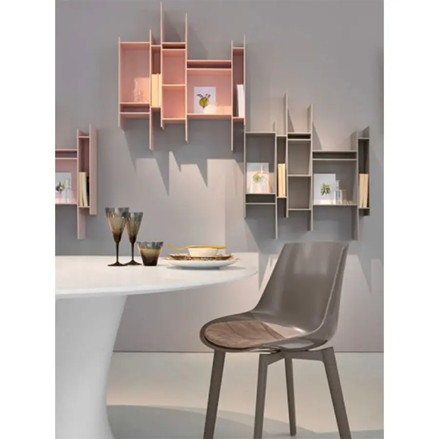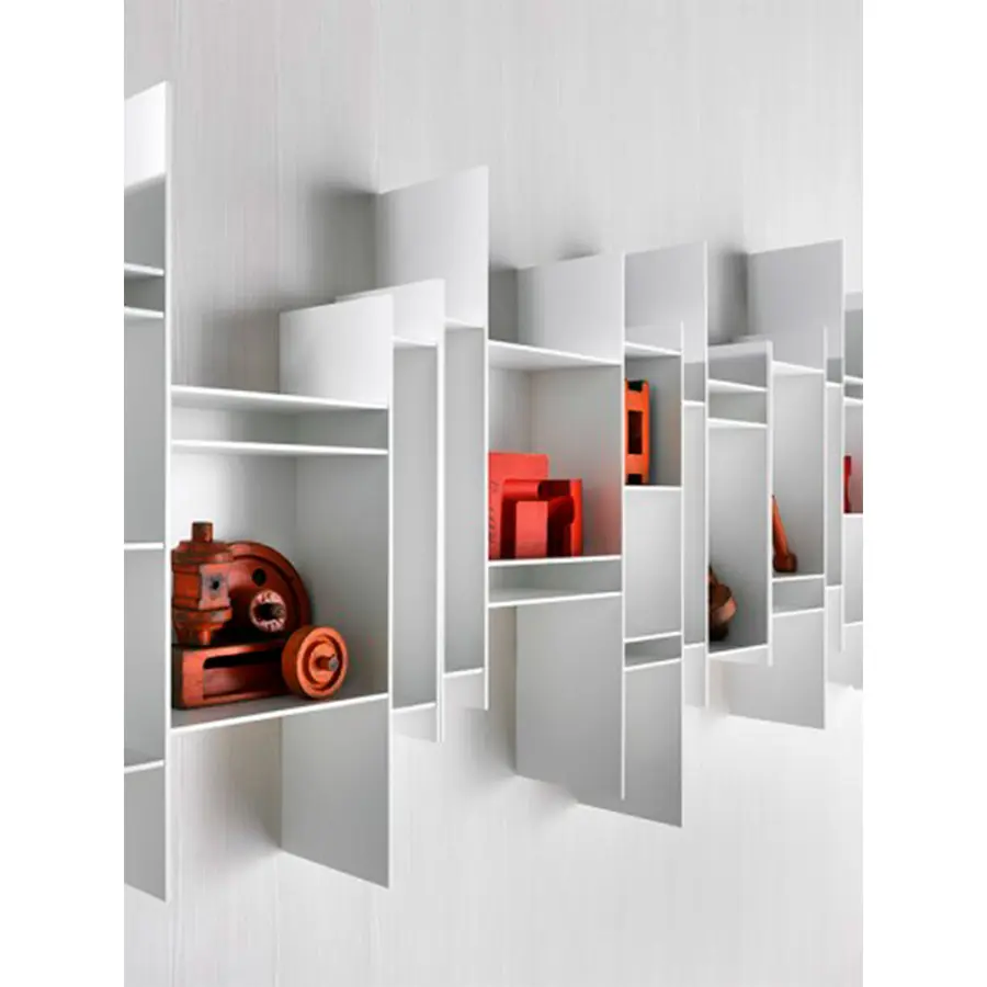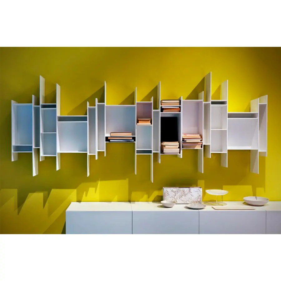 Un cartel gráfico en la pared que llama la atención. Una estantería colgante pequeña pero entrañable, capaz de conferir dinamismo a cualquier entorno y embellecerla como una obra de arte. Esta es la característica principal de Randomito, cuyo módulo único y verticalmente reversible puede usarse tanto individualmente como por agregación, obteniendo así muchas configuraciones personalizadas. Además, la paleta de colores se ha agregado más tonos a lo largo de los años: no solo blanco puro sino otros siete tonos, incluidos los pasteles. Neuland Industriedesign concibió una estantería que evoca movimiento y ligereza, cuya silueta es inconfundible: única en su tipo, está inspirada en el «progenitor» Aleatorio, que representa uno de sus caminos evolutivos. Maravilloso en contextos residenciales, Randomito se presta excelentemente a espacios comerciales.