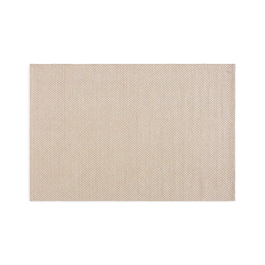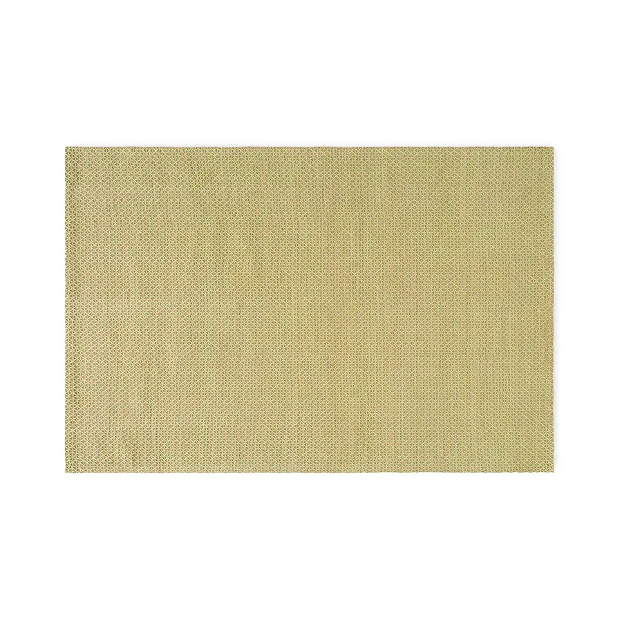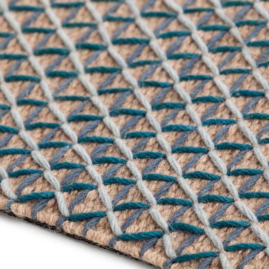 Su sencillo trazo geométrico de triángulos se manifiesta de manera cautivadora sobre este material con fuertes connotaciones rústicas, que funciona como el lienzo perfecto para tan apacible y serena composición. Está disponible en dos tamaños.