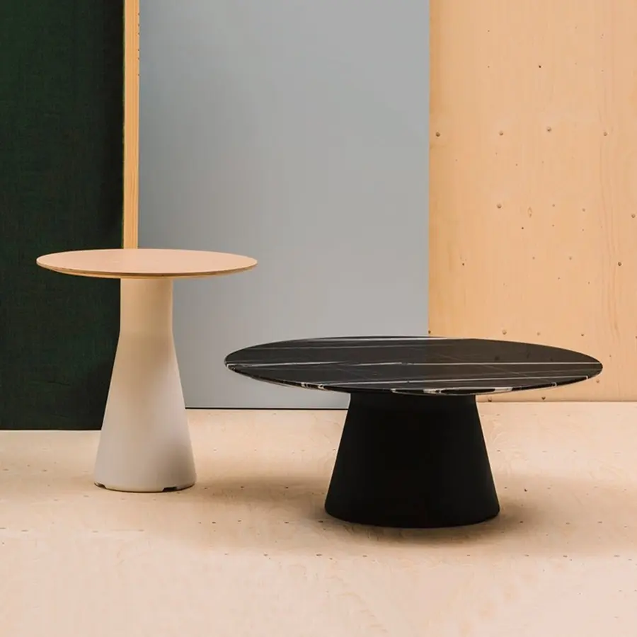 Reverse es una colección de bases para mesas con columna central realizadas en polietileno 100% reciclable. La base Reverse es un icono de elegancia y estabilidad estructural, y plenamente combinable con una amplia variedad de sobres de acabados y prestaciones muy diversos. Dispone de diferentes opciones en diámetros y alturas permitiendo ofrecer una solución estilizada para mesas auxiliares, altas o de reunión. Todos los modelos de base Reverse están disponibles en acabado mate, laca brillo en una gama de seis atractivos colores o madera.