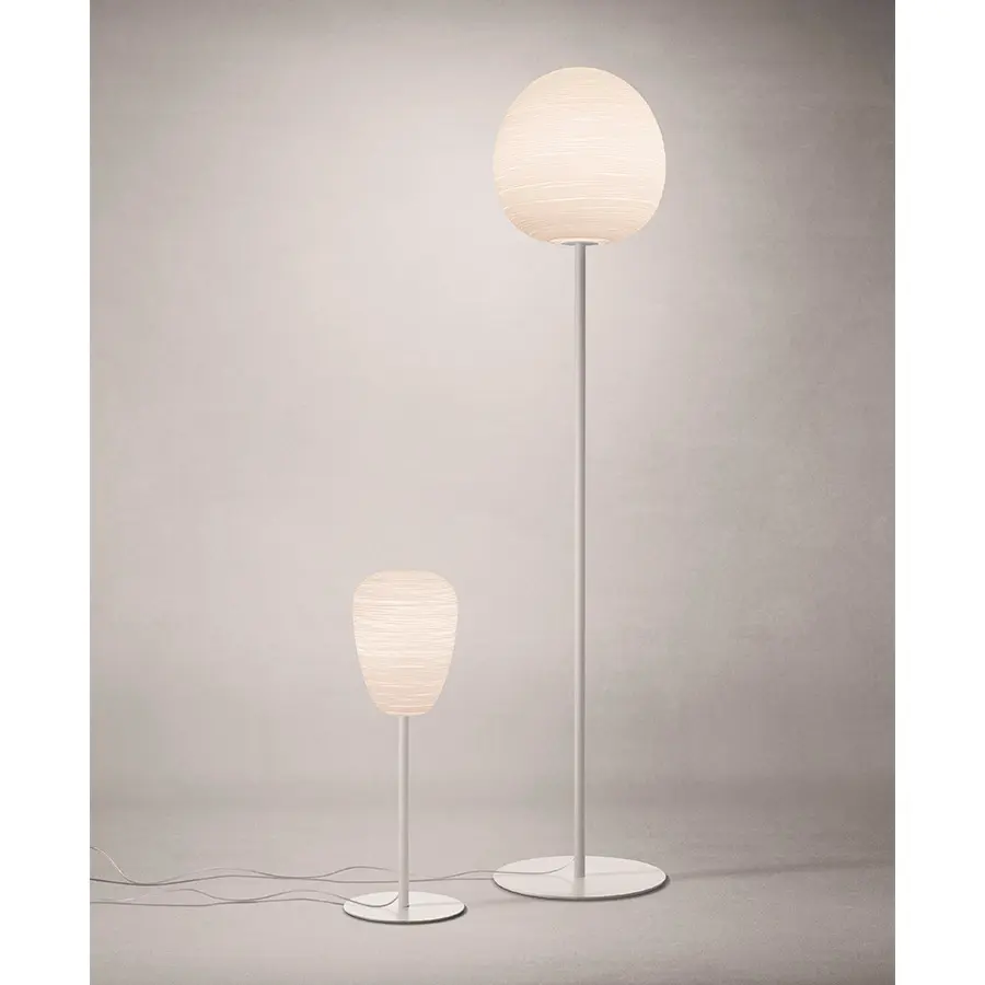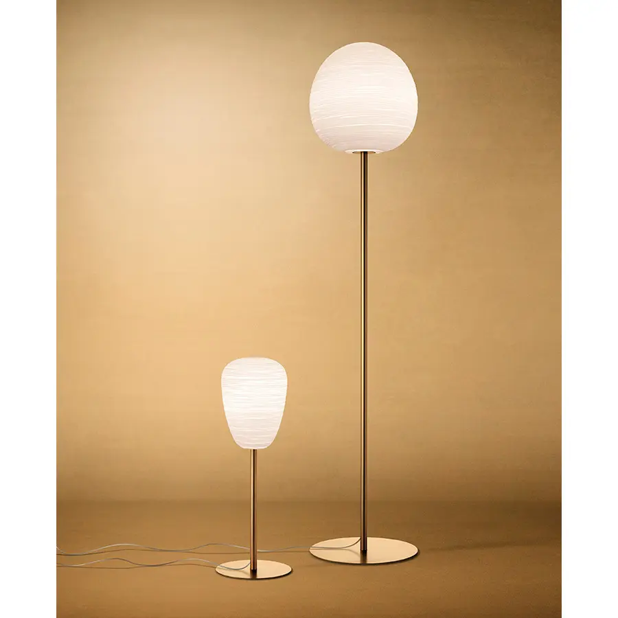 Una familia de lámparas con una luz relajante para ambientes muy diversos que interpreta la magia del papel de arroz o de la corteza de morera, materia prima de las lámparas japonesas, en la corporeidad preciosa del vidrio soplado y satinado. Las líneas horizontales que inciden en la superficie de las lámparas producen una decoración suave y fascinante a la vez que moderna, además de contribuir a filtrar la intensidad de la fuente de iluminación, difundiendo una luz plena, cálida y suave en el ambiente. Este modelo forma parte del sistema Mix & Match, que resulta perfecto tanto como elemento de decoración individual, para imprimir carácter a un cuarto, como combinado en múltiples configuraciones para que armonice con todo el ambiente. La estructura de Rituals 1 Tavolo Alta está disponible en tres tonos de color con acabado opaco. Se puede elegir entre un tono suave de oro denso y profundo, un tono grafito más frío y sofisticado o, una vez más, el color blanco, si se prefiere un tono neutro que se integre con facilidad en cualquier ambiente.
