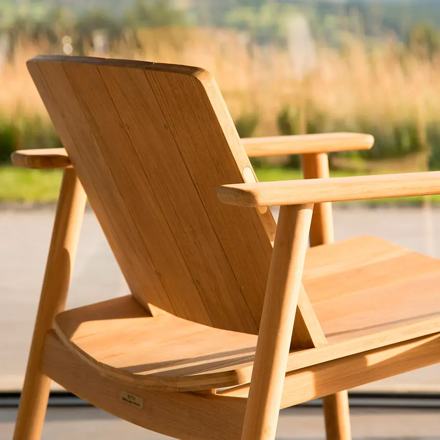 La colección Riva de muebles de exterior pretende sobre todo conseguir una atmósfera muy concreta para disfrutar mejor de los espacios al aire libre. El diseño tipo plancha del asiento y el respaldo perpetúa una larga y variopinta tradición de asientos de exteriores que siguen un patrón similar, y que en este caso ofrecen tanto una estética atractiva como la máxima comodidad.