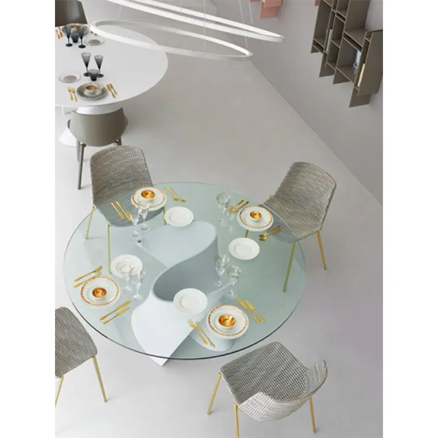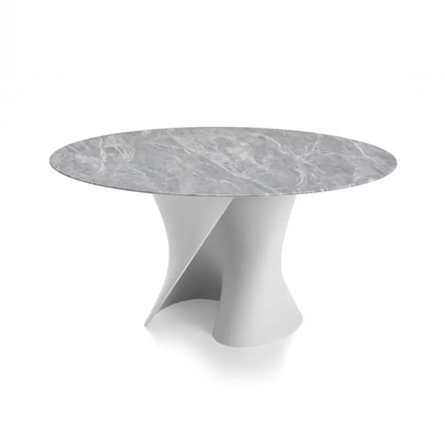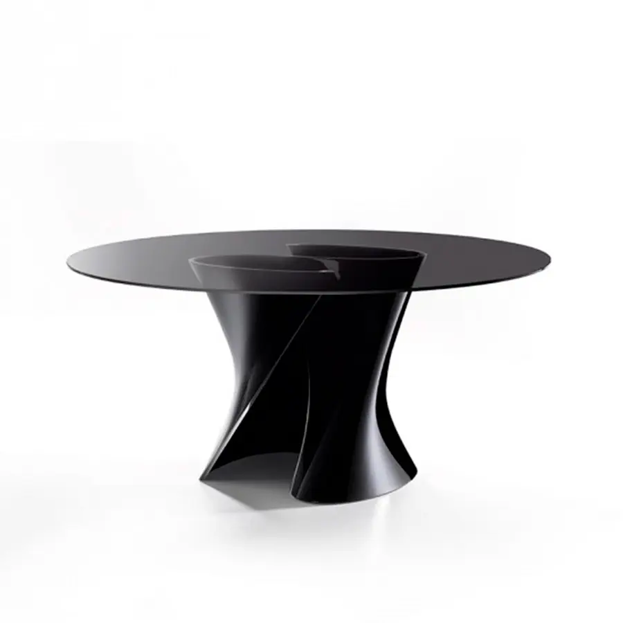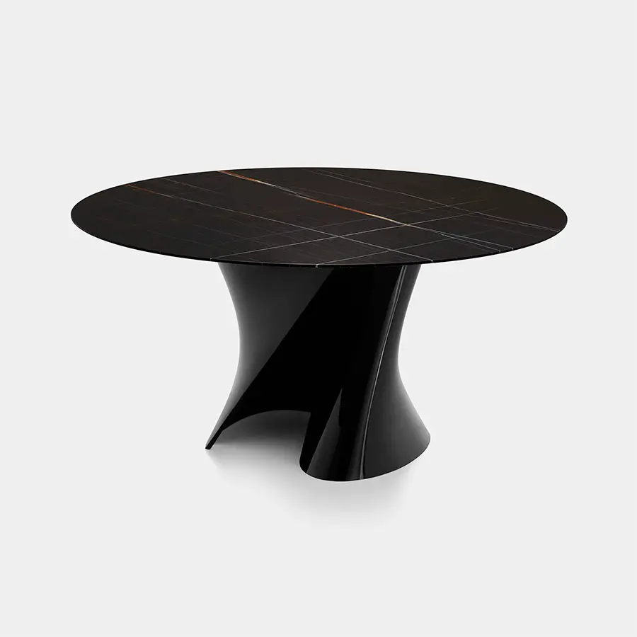 Las creaciones del galardonado diseñador realmente destacan por la tensión visible que le da a sus objetos, presentando curvas inspiradas en el proceso de (des) formación de superficies metálicas que identifica todo su camino creativo. El soporte, moldeado en Ceramilux o en Cristalplant, material tecnológicamente avanzado, hipoalergénico y no tóxico, puede ser coronado por diferentes tipos de tapa – en cristal, fibra de madera, mármol o en Cristalplant – para personalizar aún más un objeto ya único. .