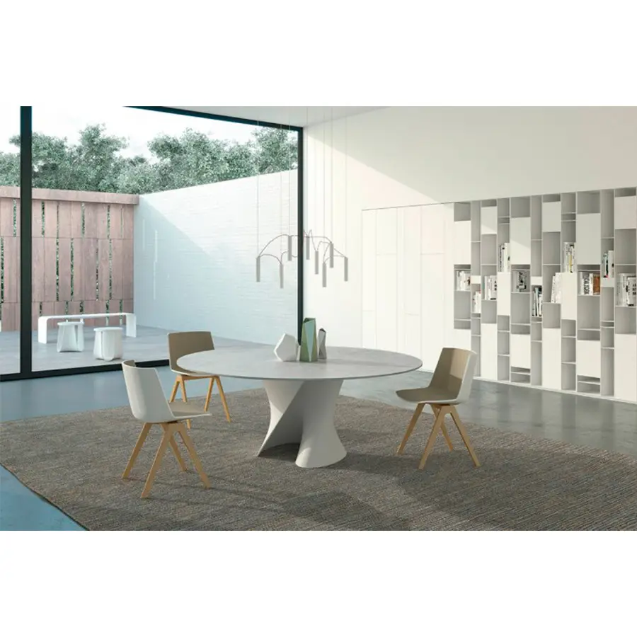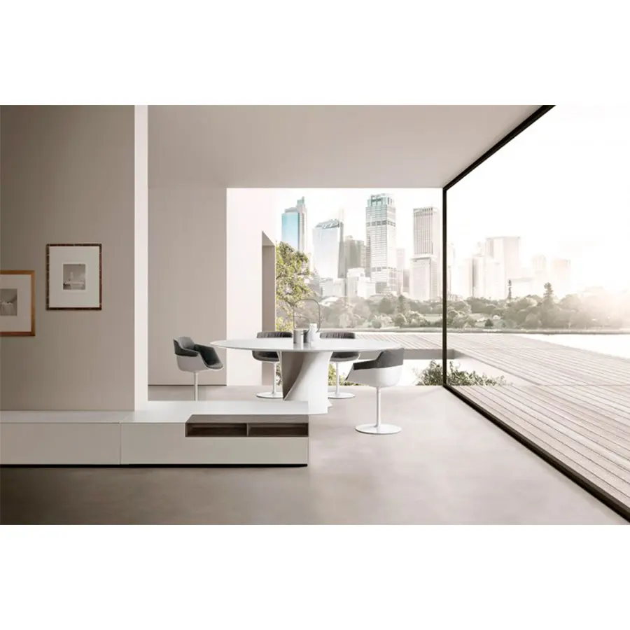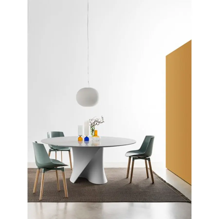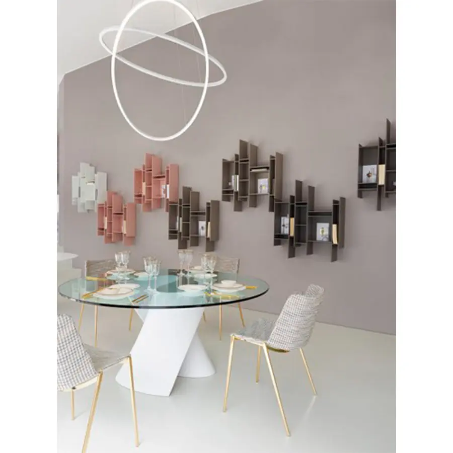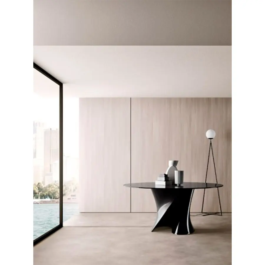 Las creaciones del galardonado diseñador realmente destacan por la tensión visible que le da a sus objetos, presentando curvas inspiradas en el proceso de (des) formación de superficies metálicas que identifica todo su camino creativo. El soporte, moldeado en Ceramilux o en Cristalplant, material tecnológicamente avanzado, hipoalergénico y no tóxico, puede ser coronado por diferentes tipos de tapa – en cristal, fibra de madera, mármol o en Cristalplant – para personalizar aún más un objeto ya único. .