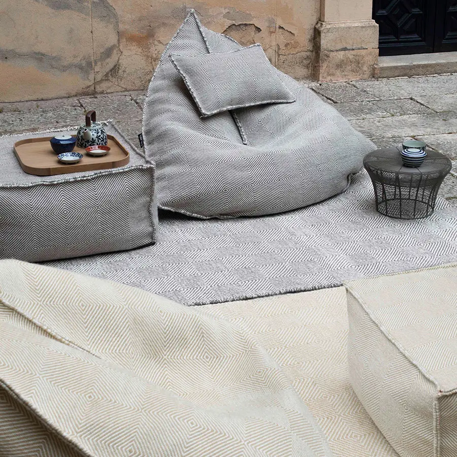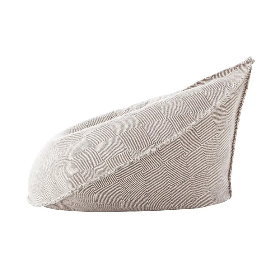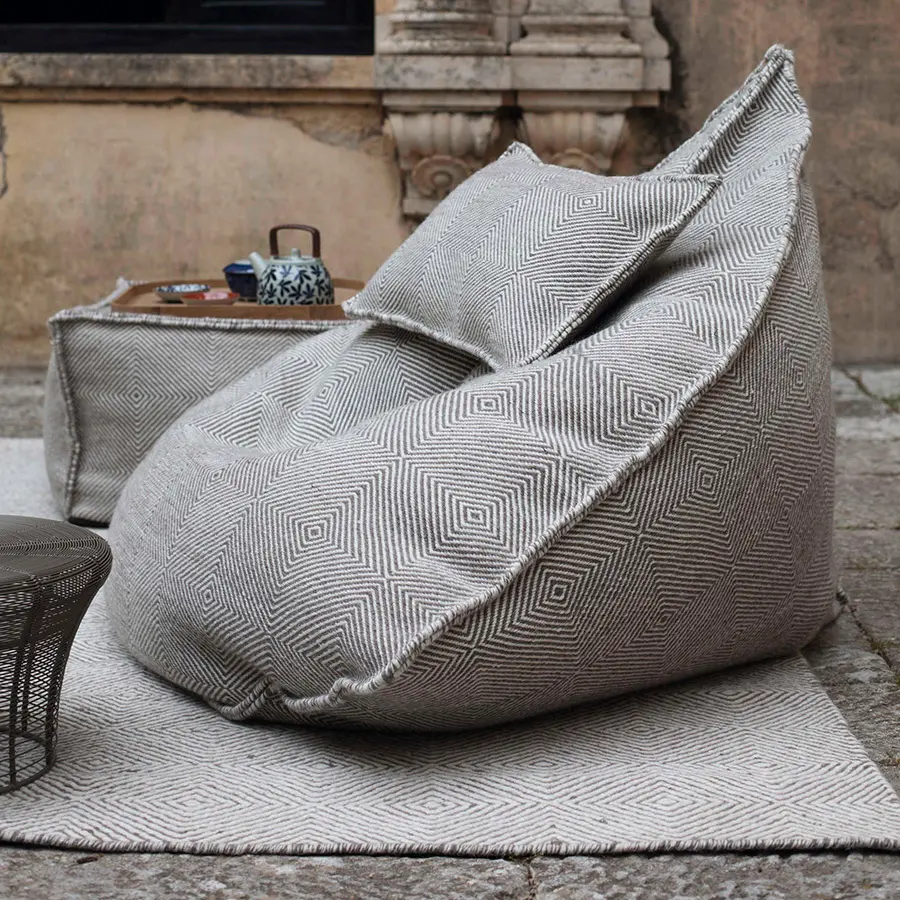 Este es el puf de la colección Sail, un asiento casual a ras del suelo estilo bean bag con un relleno que no es compacto, así que se adapta a la forma del cuerpo resultando muy cómodo. En su confección se emplea tan solo dos piezas de tejido con un patrón triangular, una peculiaridad de su diseño de la que toma su nombre toda la colección, por su similitud con la forma de una vela náutica.