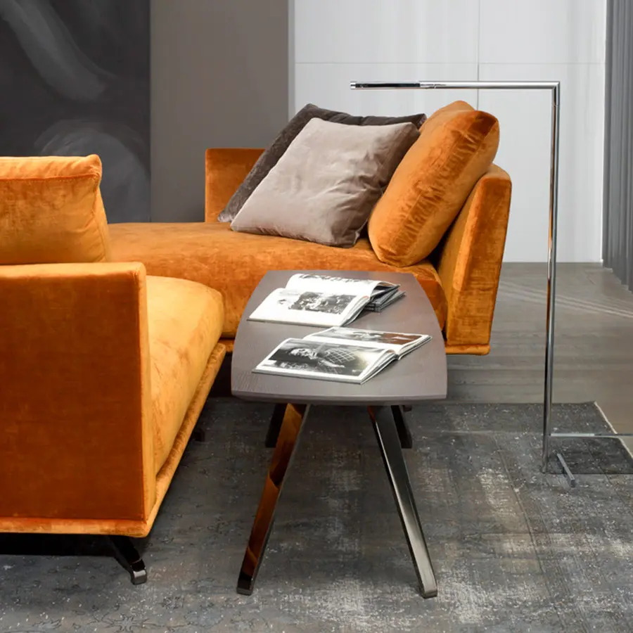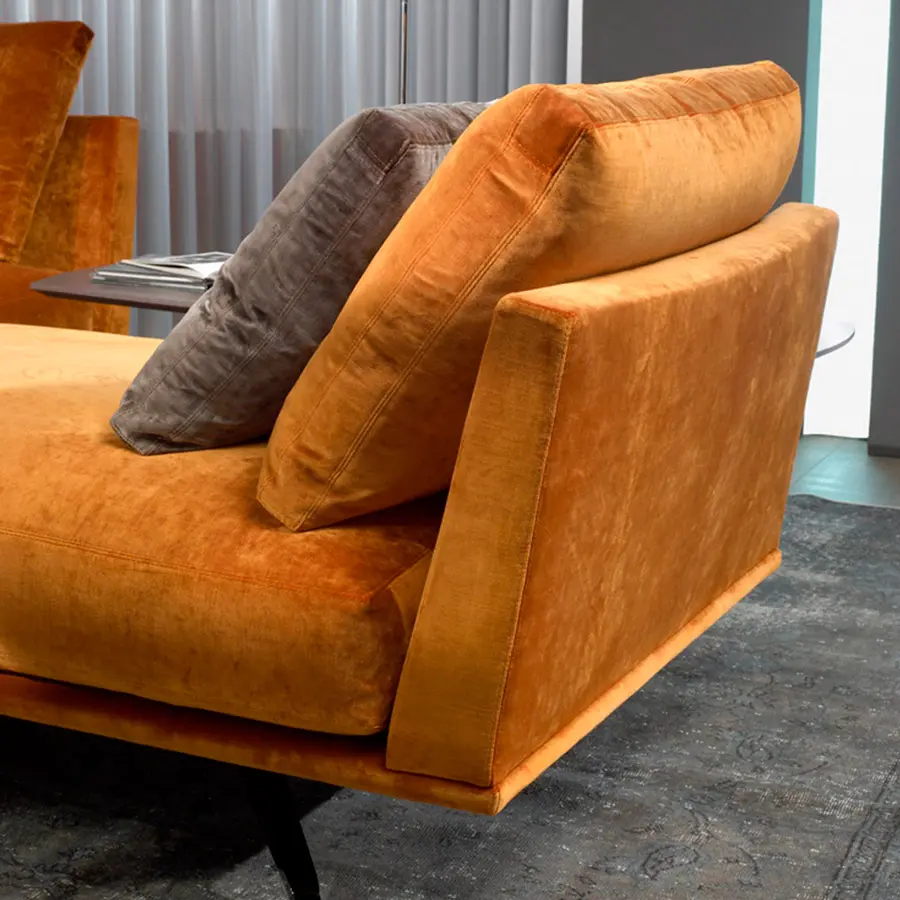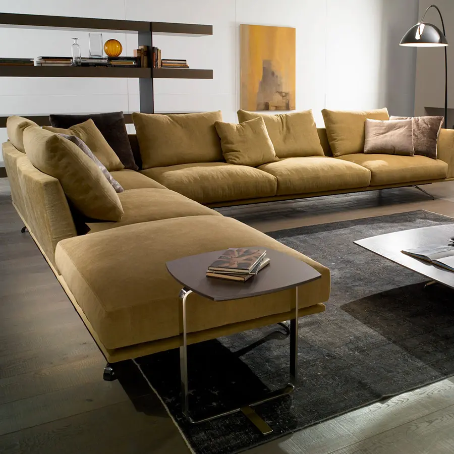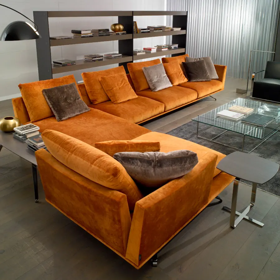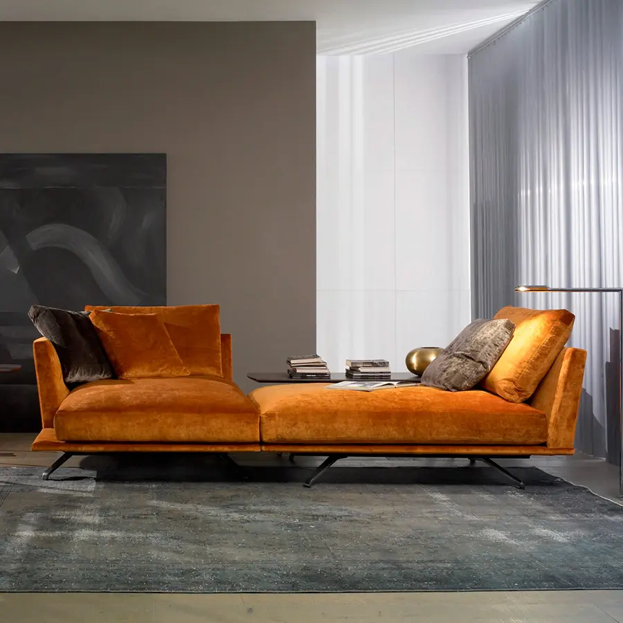 La colección Shelby se concibe como un producto lineal que visiblemente despega del suelo. Todo su volumen se presenta sustentado únicamente por unas finas patas inclinadas en sus dos extremos y su aparente fino bastidor metálico permite la creación de sofás de más tres metros. Debido a los cojines que aporta, es fácil acomodarse en él. El programa permite numerosas combinaciones a fin de poder ser adaptado a múltiples espacios, con ello se pueden conseguir grandes sofás, sofás con chaise-longue o incluso rinconeros. La versión Shelby Class permite la ubicación del mismo producto en ambientes más contemporáneos, gozando de la misma resolución técnica, pero añadiéndole el detalle del volante inferior, que le aporta otro tipo de riqueza al mismo producto.