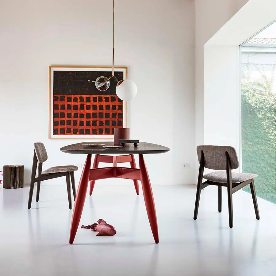 La arquitectura de un modelo de silla clásico se ha reconfigurado traduciendo y girando suavemente los elementos lineales del marco para encontrar una nueva armonía más dinámica, elegante y contemporánea.