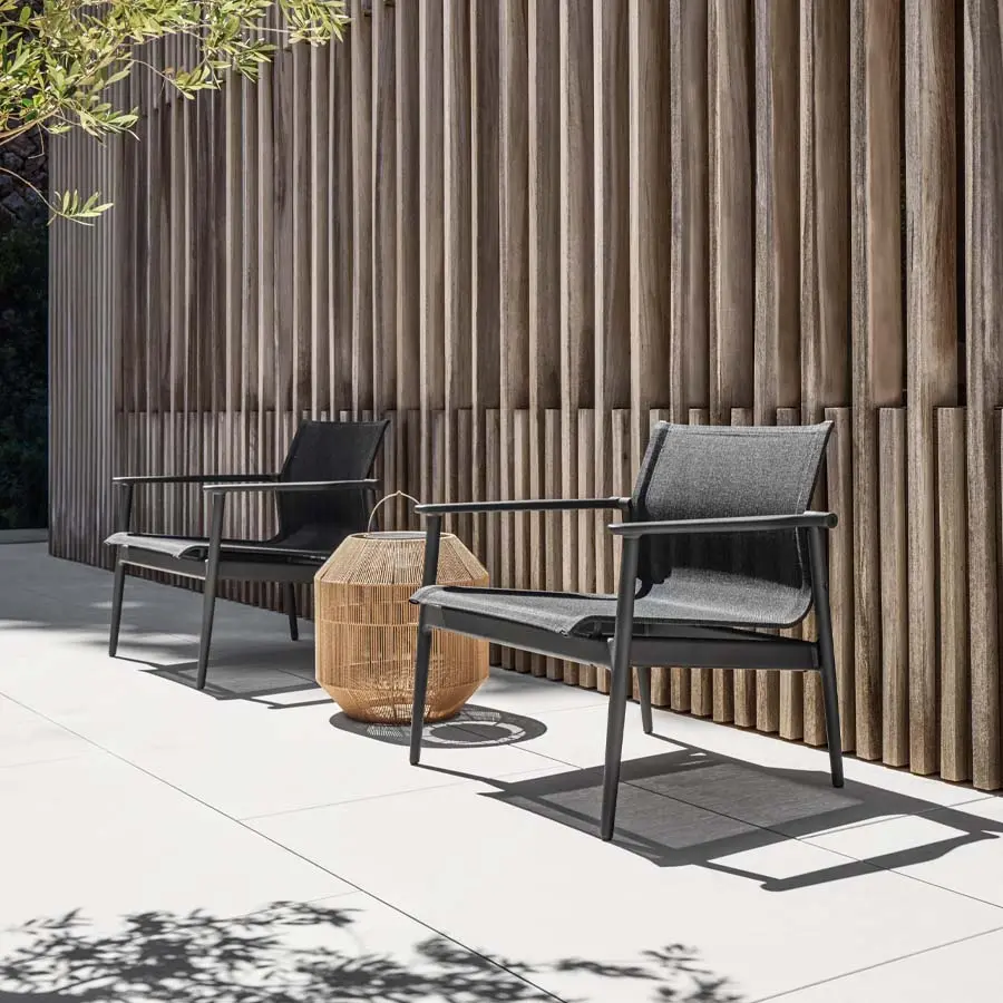 El modelo 180 de Gloster es una colección sencilla de líneas depuradas, pero es el distintivo de un diseño funcional. Con toques de marcado diseño, la cómoda silla lounge y la tumbona completan esta famosa colección de aluminio fundido con asientos y respaldos en tensores impermeables. Las mismas líneas geométricas y delicadas, y el sistema de apilado vertical se aplica a todos los artículos que componen la gama.