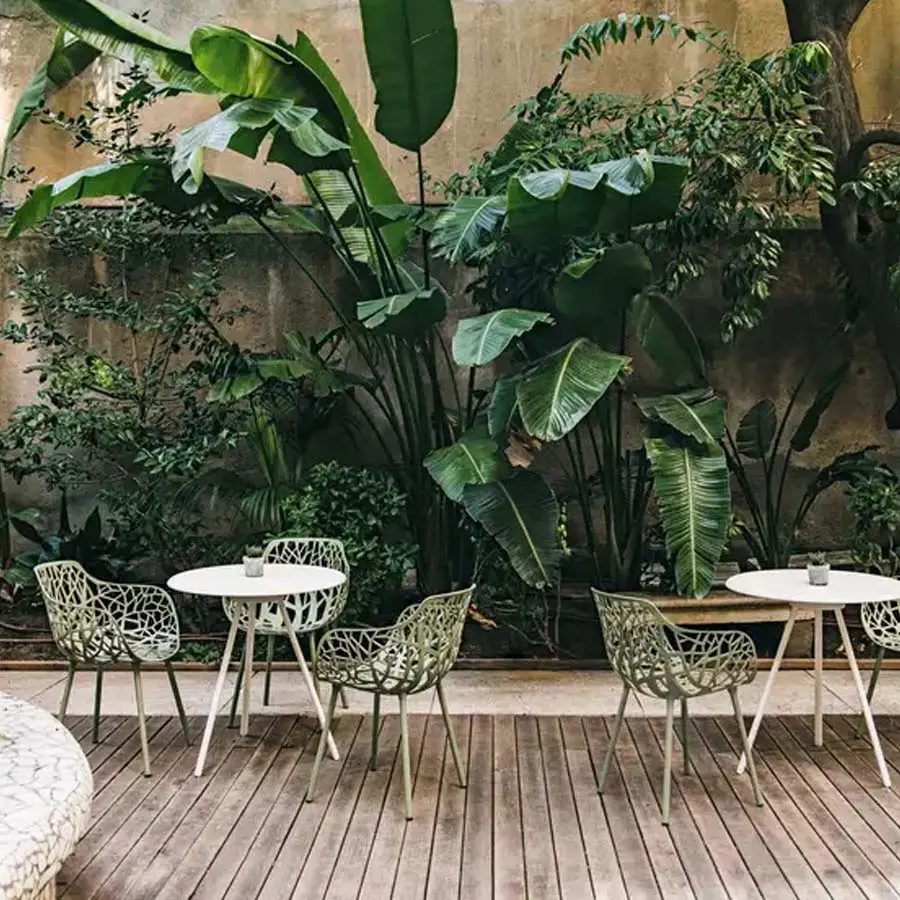 Fabricada en aluminio inyectado, Forest se caracteriza por un diseño icónico y elegante. Disponibles en múltiples colores, los asientos de la colección Forest fusionan la naturaleza con la tecnología y encaja perfectamente tanto en interiores como en exteriores.