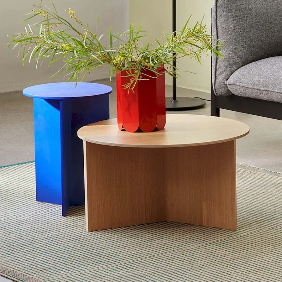 Slit Table de HAY es una mesa auxiliar geométrica inspirada en técnicas de origami de papel. El delgado marco aparece doblado debajo de la mesa, creando una forma simple pero escultórica que recuerda al arte tradicional japonés en papel. La mesa Slit está disponible en una selección de diferentes formas y tamaños y se ofrece en una variedad de colores y acabados. Compacto y versátil, puede usarse solo o en grupos en diversos entornos públicos o privados.