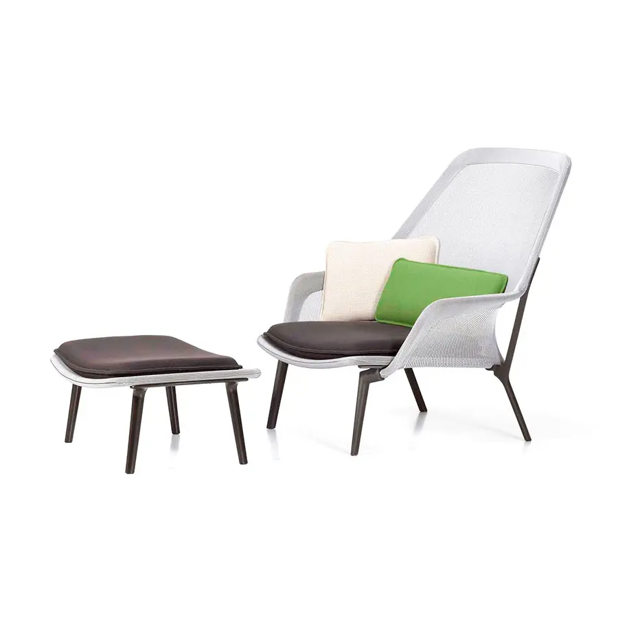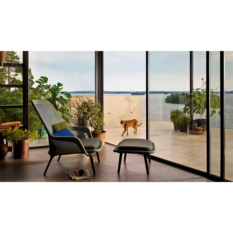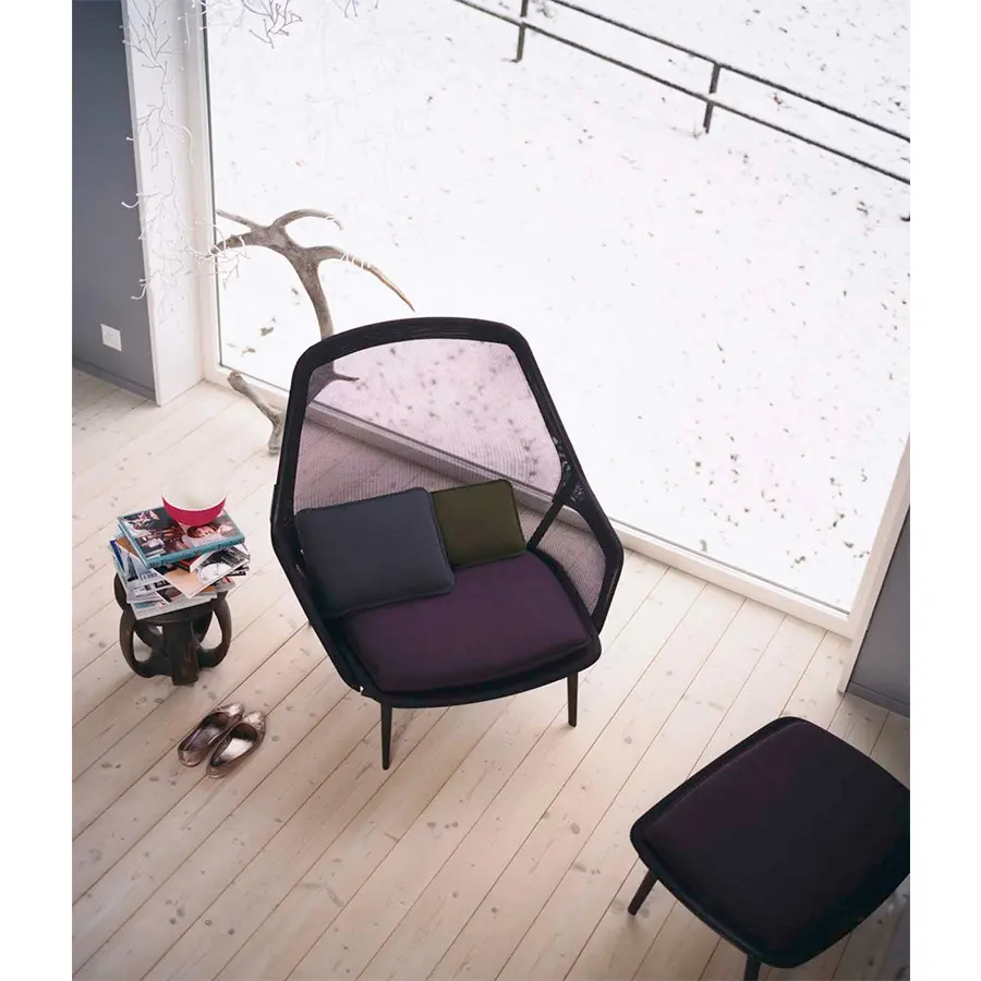 La comodidad de la amplia Slow Chair de Ronan y Erwan Bouroullec puede disfrutarse plenamente cuando se combina con el Ottoman a juego. Ambos poseen un diseño ligero y elegante debido a su tapicería de punto translúcido y a sus finos contornos. La Slow Chair y el Ottoman están disponibles en varios colores.