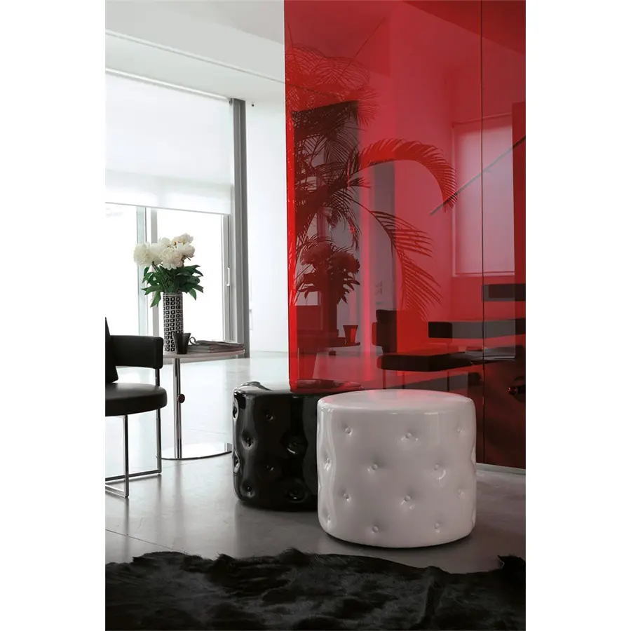 Puff revestido en telas y pieles de la colección. Diametro 52x46H