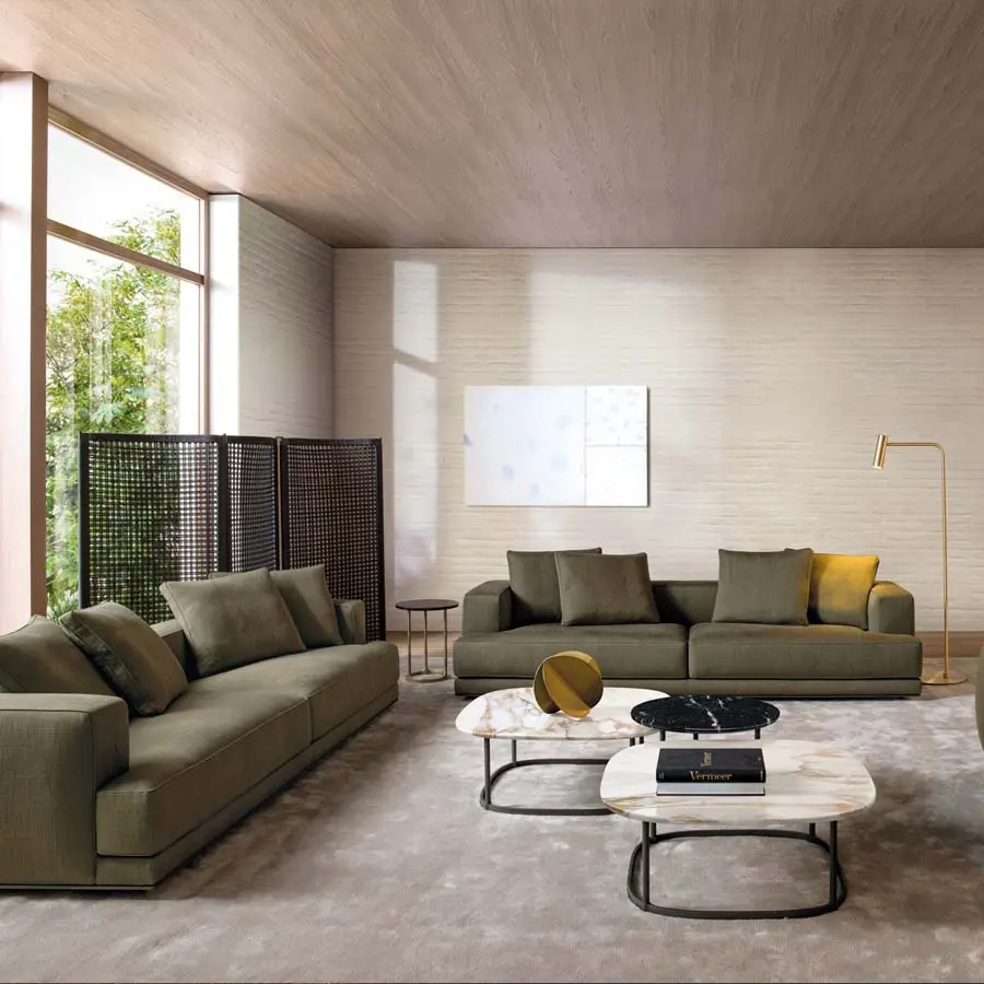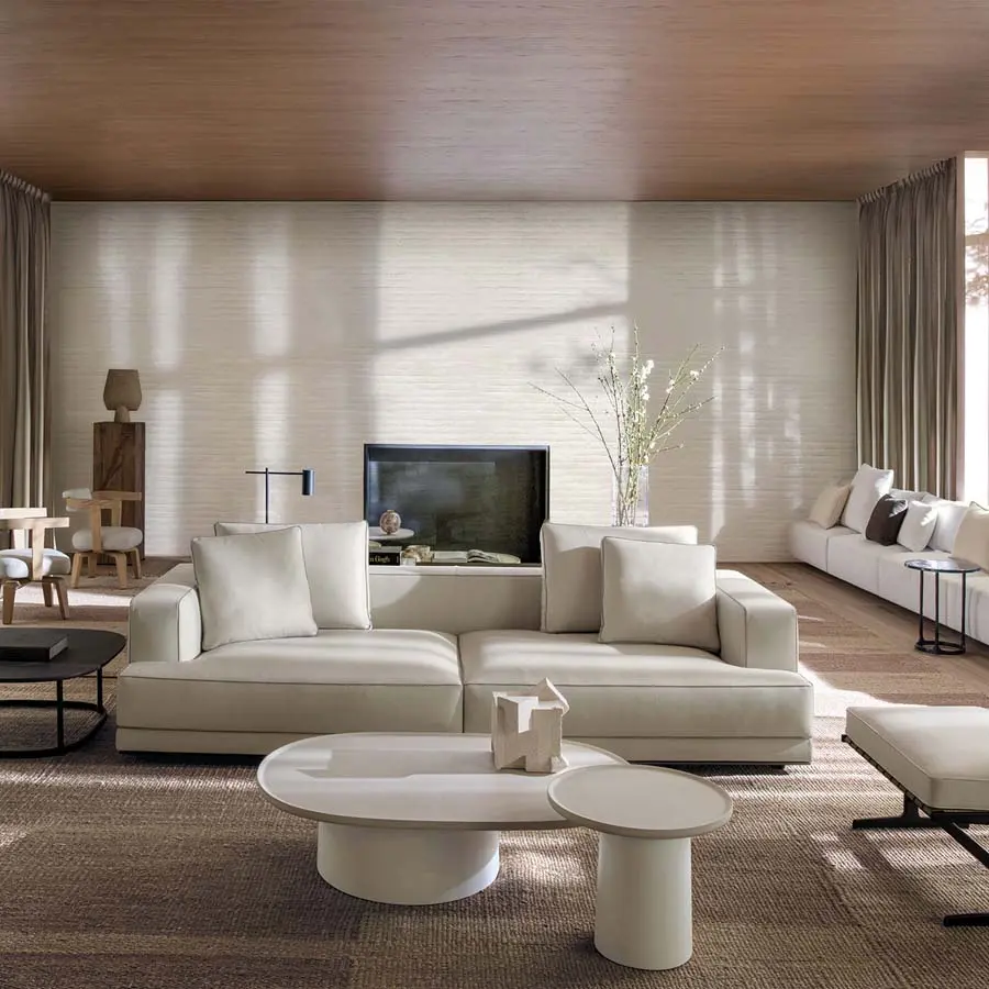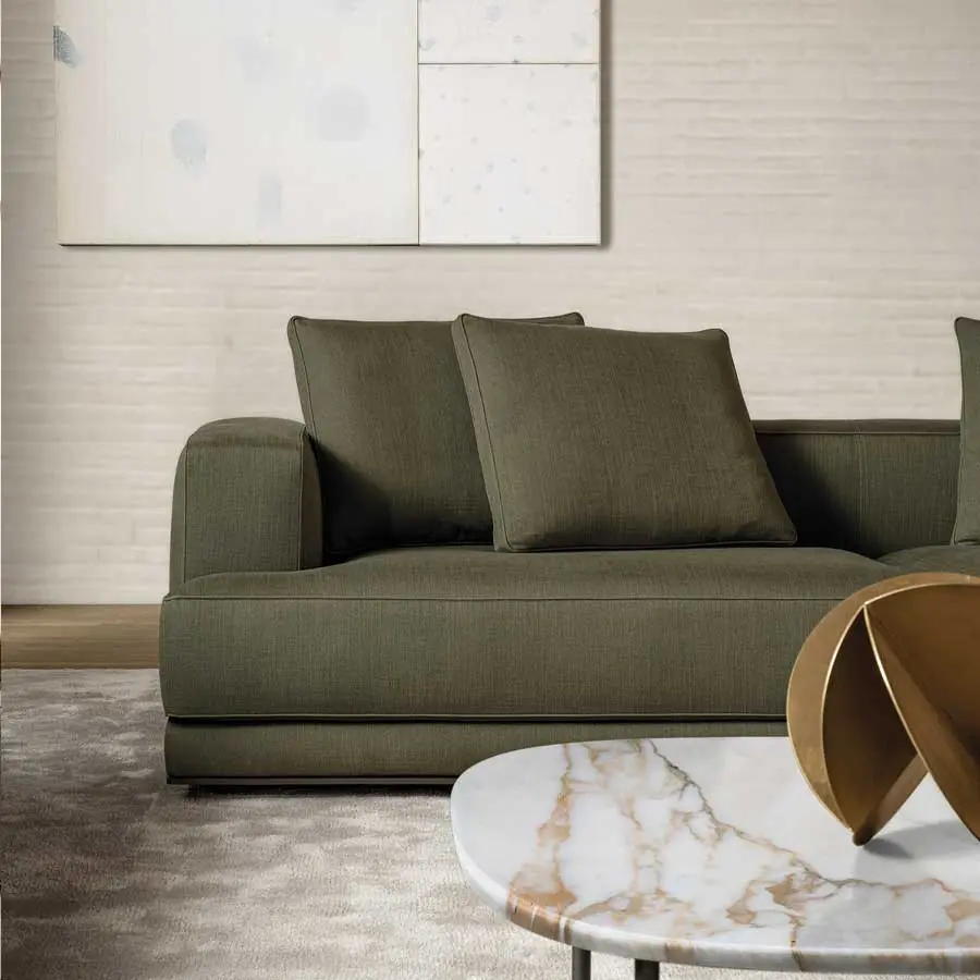 El sofá Augusto, del diseñador belga Vincent Van Duysen, es una exploración de contrastes: donde el pasado se encuentra con el presente y la innovación técnica se une al experto trabajo artesanal de Molteni&C. La clave de la estética atemporal de Augusto es el equilibrio entre los asientos suaves y tapizados con la sofisticación de su moderna estructura de metal, creando un diseño armónico y único que se fusiona sin problemas con una multitud de entornos. Para realzar la silueta única de Augusto, un elegante ribete recorre los cojines, define su forma.