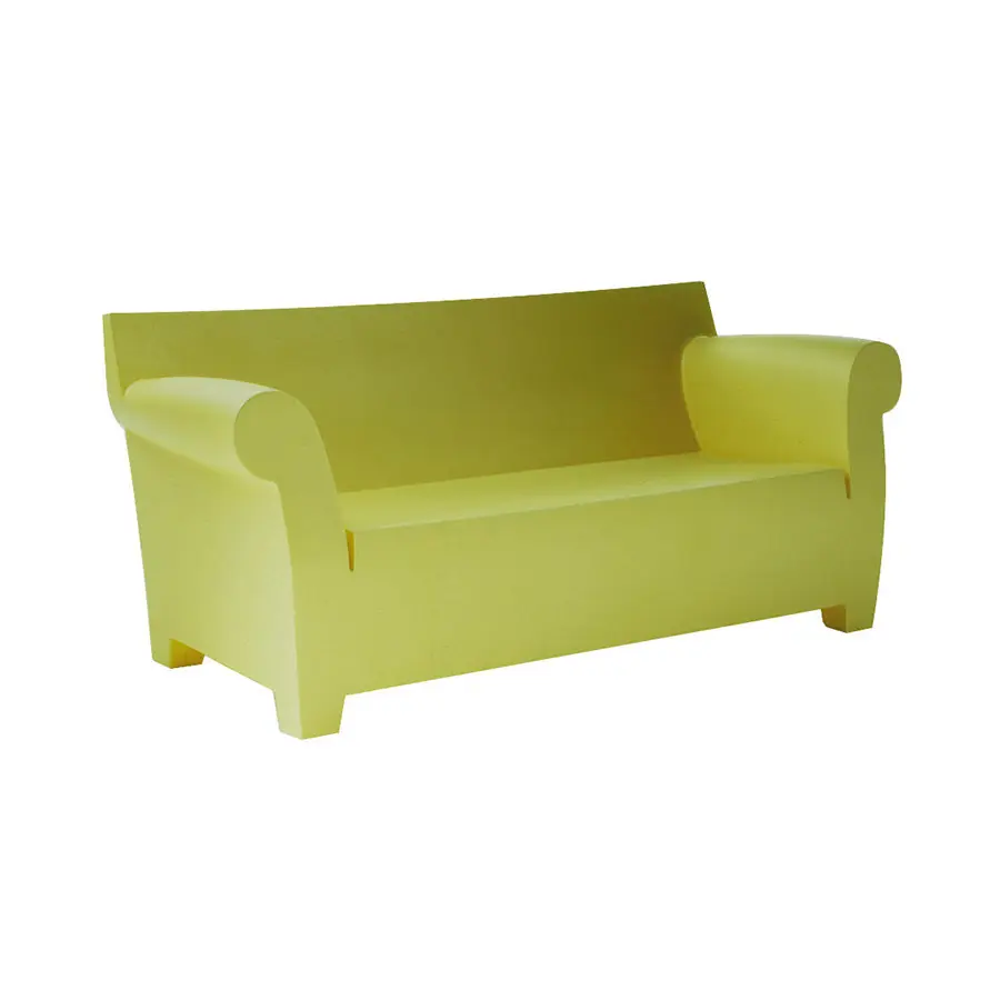 Auténtico icono made in Kartell, premio Compasso d’Oro 2001, el sofá Bubble Club, en polietileno pintado en bloque, fue pionero de un nuevo concepto de complemento de decoración: el sofá industrial completamente realizado en material plástico. Junto a los tradicionales, Bubble Club se enriquece de dos nuevos colores rosa pálido y verde oliva.
