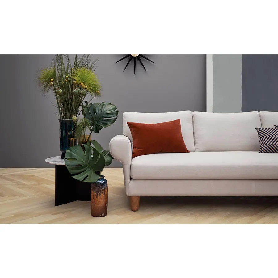Cojines de asiento realizados con inserto de espuma de poliuretano, acolchado con fibra y pluma lavada y esterilizada. Cojines de respaldo rellenos de fibra de poliéster y pluma lavada y esterilizada.