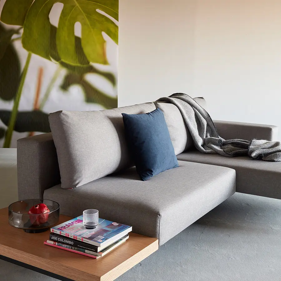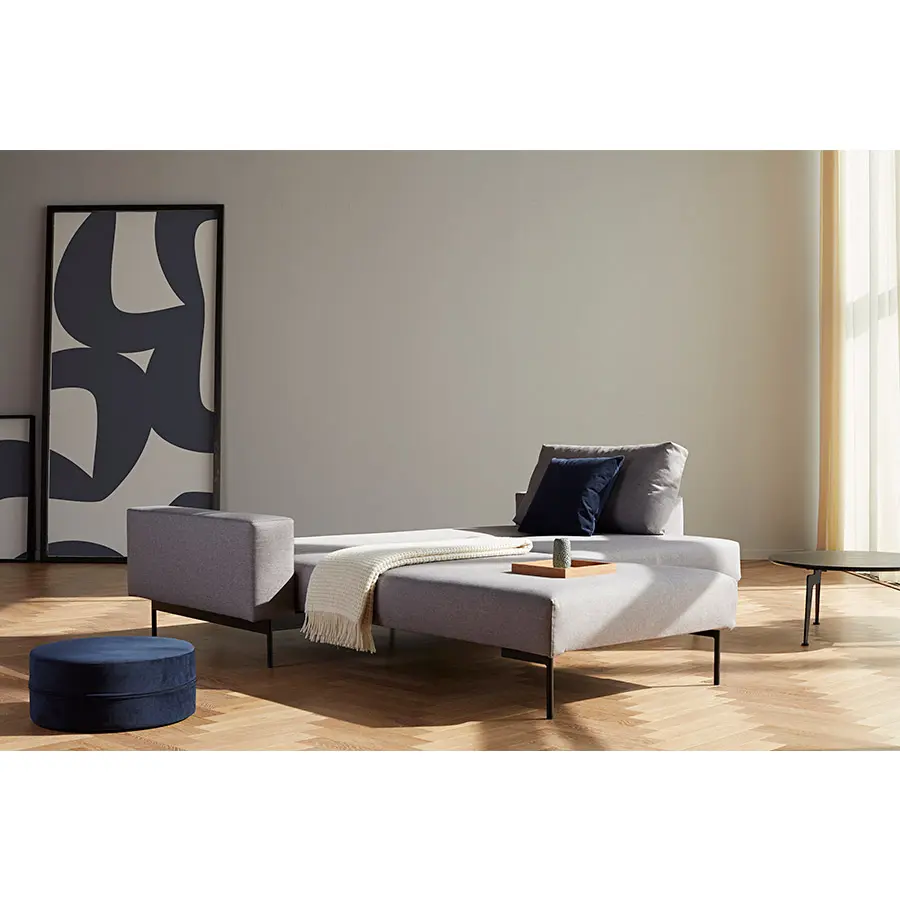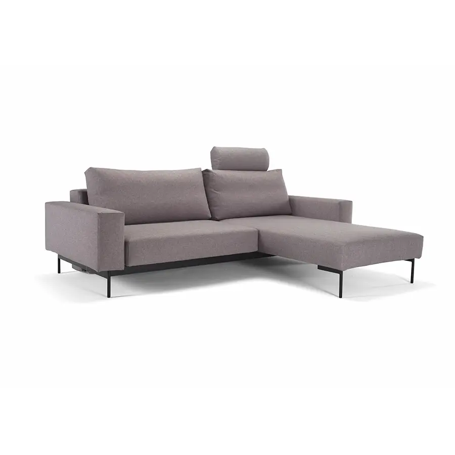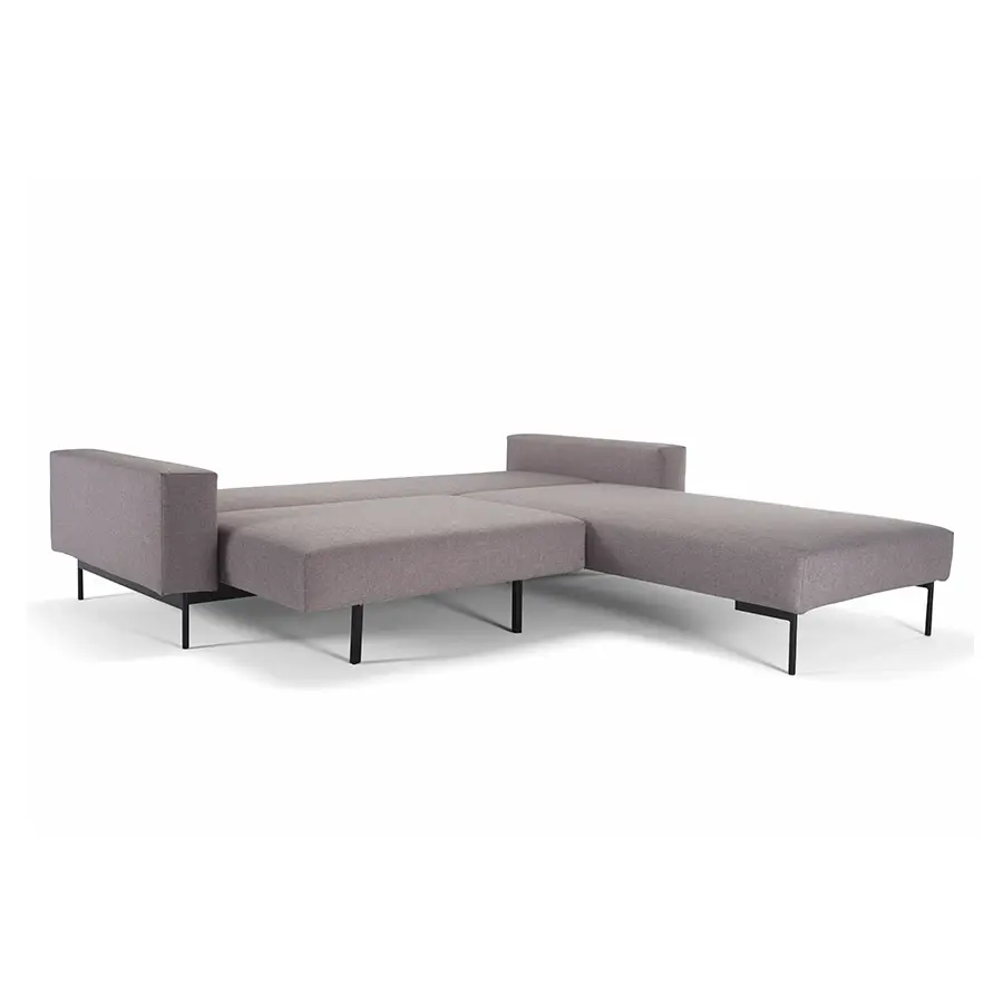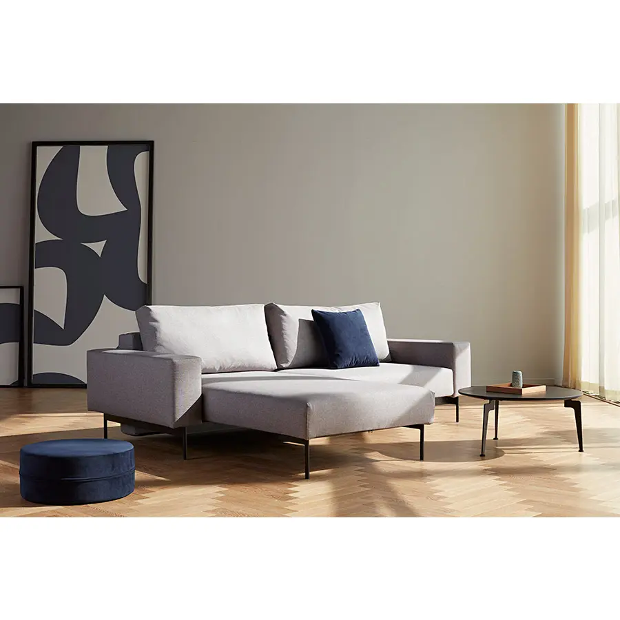 El sofá cama Bragi es tan elegante, preciso y contemporáneo como funcional. Este sofá cama se define por un estilo con toque industrial y contemporáneo. Sus patas sencillas color negro en combinación con un colchón de muelles con suaves cojines de respaldo. Efectivamente, brinda un confort agradable mientras está sentado, descansando o durmiendo. El diseño multifuncional de Bragi le permite instalar el asiento y la chaiselongue en el lado izquierdo o derecho. Por los materiales con los que está fabricado, este sofá cama es resistente y duradero. Medida de cama 140 x 200