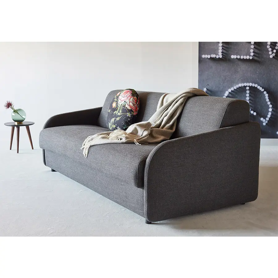 Combinando la máxima comodidad con un diseño contemporáneo, el sofá cama Eivor incorpora un mecanismo innovador que transforma eficientemente el sofá en una espaciosa cama doble. Construido con materiales de alta calidad con una estética notablemente encantadora, el sofá cama Eivor proporciona el entorno óptimo para un buen descanso. Ideal para usarlo a diario dentro de la sala o en una habitación libre para uso ocasional. Los sofás cama de Innovation se caracterizan por su atemporalidad, fuerza, el estilo y la innovación.