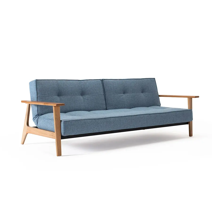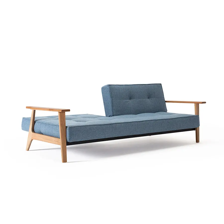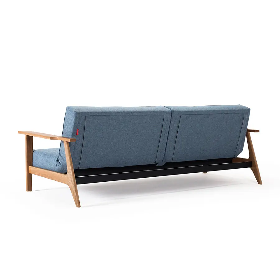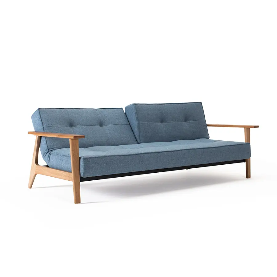 Su estructura es ligera pero resistente, con una base metálica robusta y elegantes patas en madera maciza de roble, que aportan calidez y sofisticación. El colchón con muelles ensacados garantiza un confort superior, tanto en posición de sofá como de cama, y su diseño compacto lo hace perfecto para espacios reducidos que no quieren renunciar al estilo.