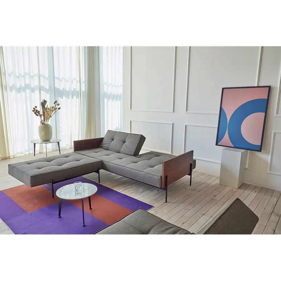 El sofá cama Splitback ha sido diseñado teniendo en cuenta la vida urbana de hoy en día. Combinando elementos de diseño de mediados de siglo con un estilo nórdico contemporáneo, su perfil llamativo rezuma carácter y proporciona la máxima comodidad. El sofá se transforma fácilmente gracias a un mecanismo innovador. El Splitback se utiliza idealmente en una sala de estar o dormitorio para el uso diario o cuando tienes invitados ocasionalmente. También se pueden comprar elementos adicionales y agregarlos al sofá cama gracias a su diseño modular, lo que permite al usuario crear su propia configuración.