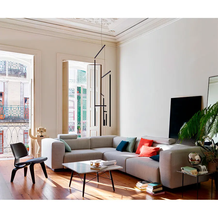 Con unas proporciones cuidadosamente equilibradas, su extraordinario confort y una renuncia consciente a los detalles decorativos, el Soft Modular Sofa (2016) de Jasper Morrison representa las características de un sofá modular en su forma más pura.