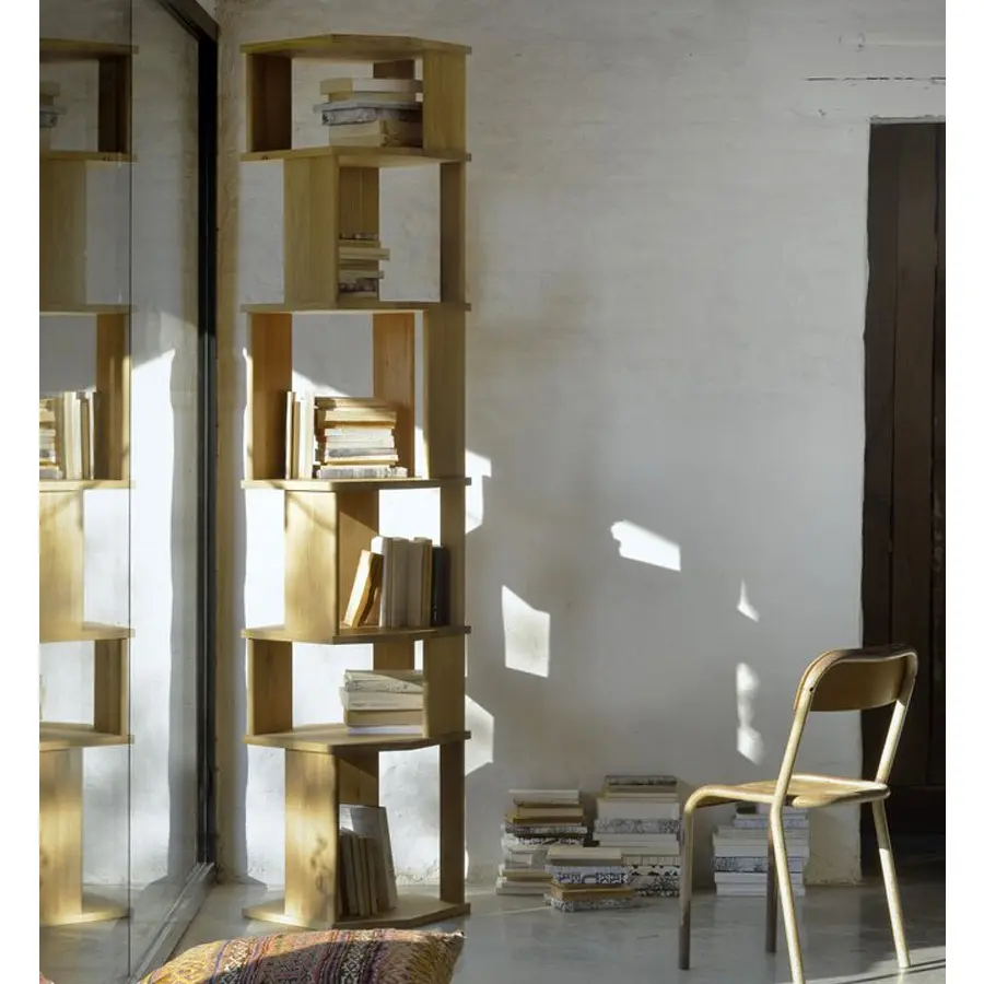 Una composición angular, diseñada por Alain van Havre, forma el corazón de un diseño que tiene como objetivo distanciarse de las superficies estáticas e inmóviles tradicionales. Al alinear perfectamente múltiples ángulos, se crea una sensación única de volumen. Cuando agregamos luz a la ecuación, el lienzo de roble multifacético crea aún más profundidad al proyectar sombras. Combine varias estanterías una al lado de la otra para crear una pieza escultórica. Sirve para colocar contra la pared o como separación de ambientes.