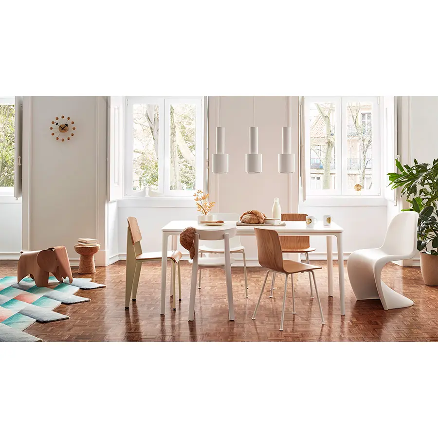 La Standard Chair de Jean Prouvé se ha convertido en uno de los clásicos más famosos del «constructor» francés. El asiento y el respaldo de esta discreta e icónica silla se ofrecen en diversos tipos de madera y la estructura metálica está disponible en distintos colores. Durante la Segunda Guerra Mundial, Jean Prouvé respondió al escaso suministro de metal con una versión realizada íntegramente en madera maciza y contrachapado.