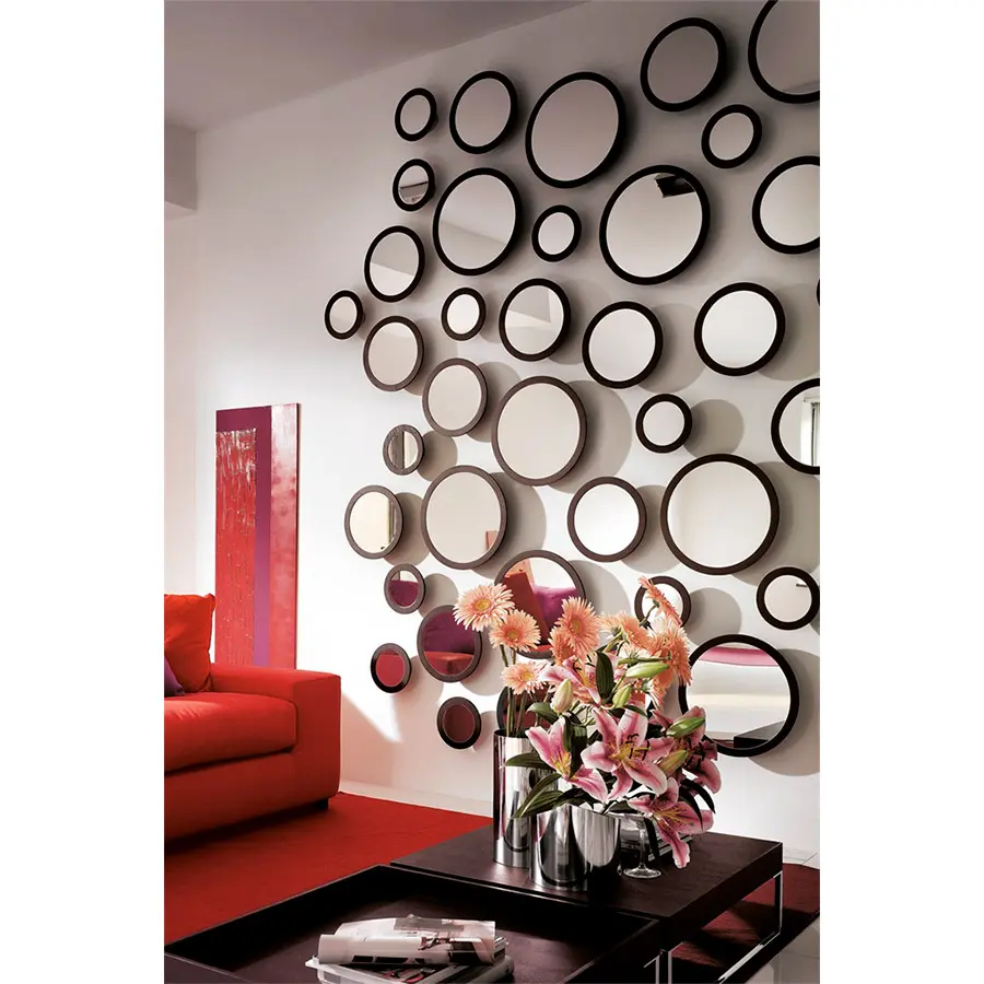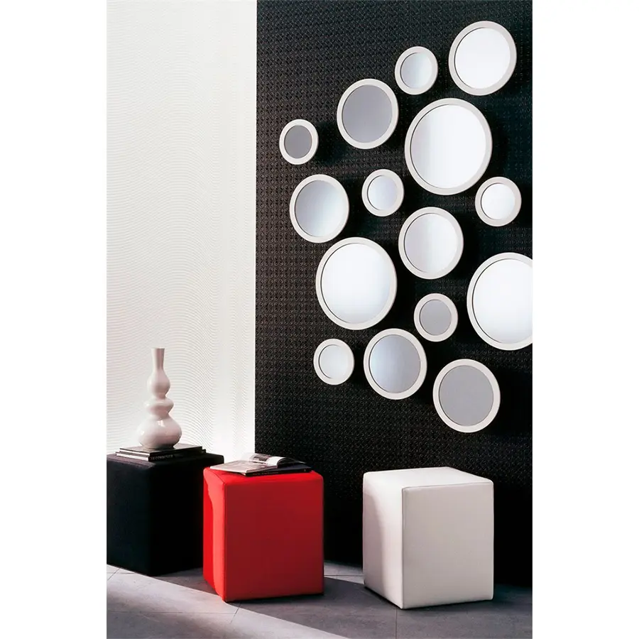 Stars cuenta con distintos diámetros para hacer composiciones y no solo ser utilizados como espejos, son elementos completamente decorativos. El marco puede ser nogal teñido, en pan de oro, plata..