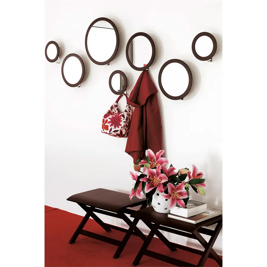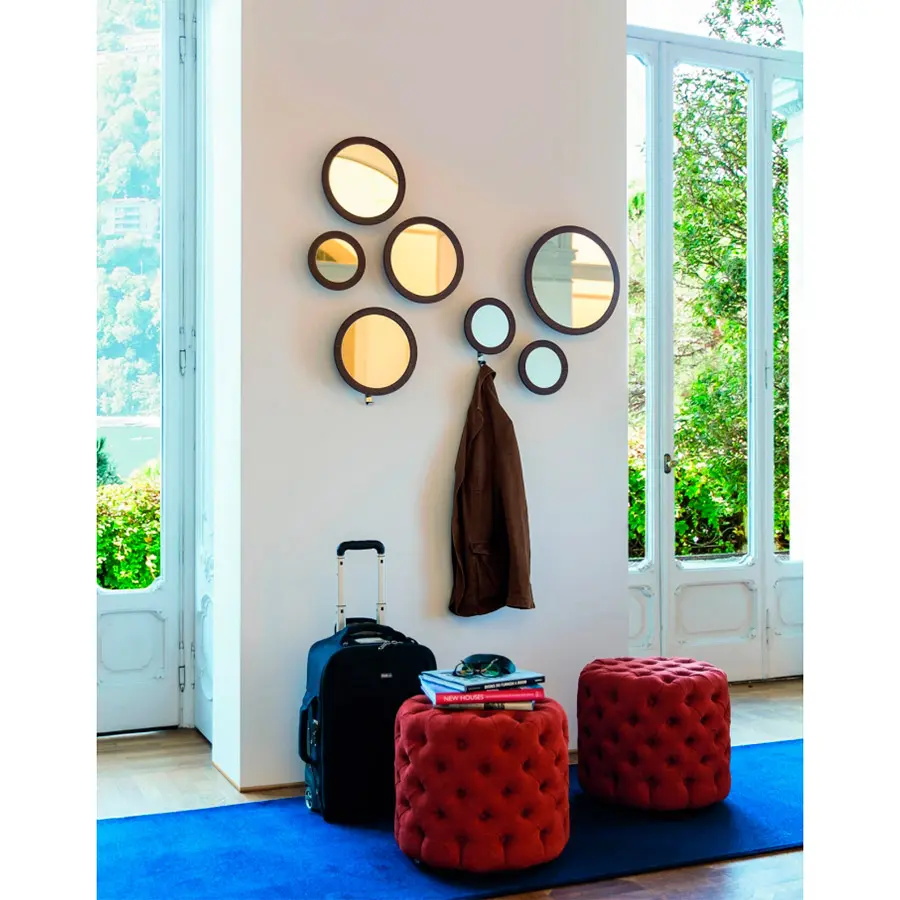 Espejos redondos de pared con marco de fresno con gancho colgador en metal. Se utilizan sólos o en composiciones.
