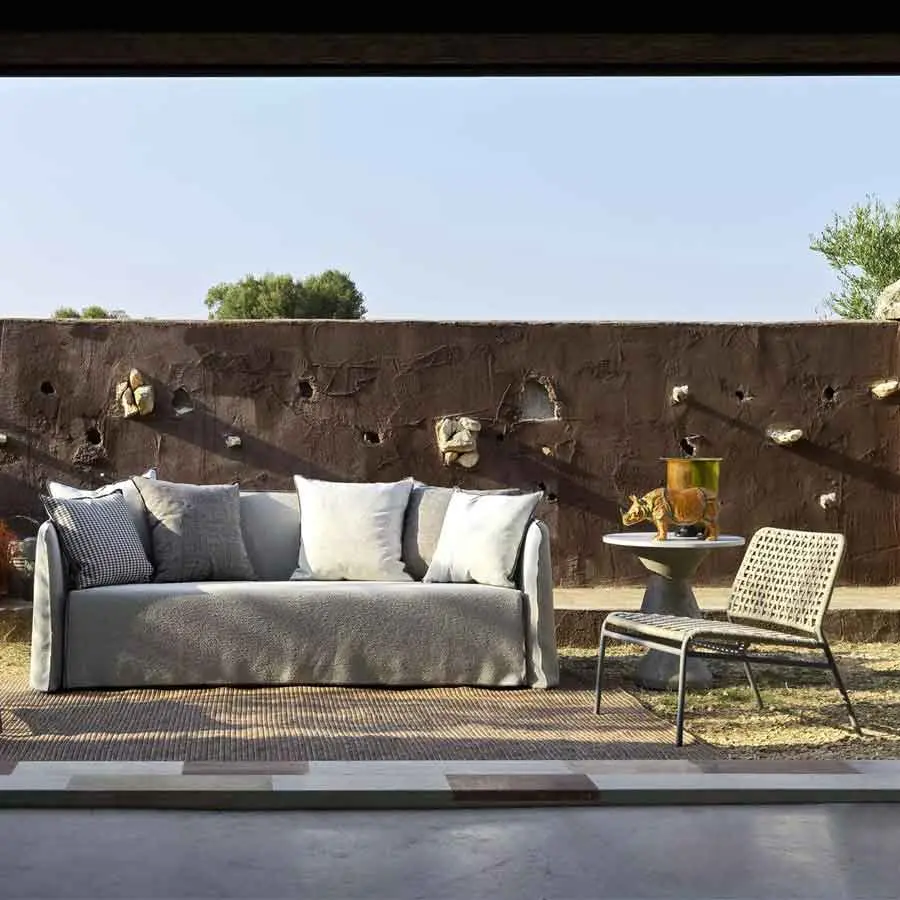 Simple y refinada, la silla lounge Straw 25 se caracteriza por la estructura tubular de aluminio pintada de gris claro. Un producto sobrio y ligero, revestido con un entramado hecho a mano con cuerda de polietileno de doble torsión, una fibra con aspecto natural, fuerte, flexible y duradera, diseñada específicamente para el exterior.