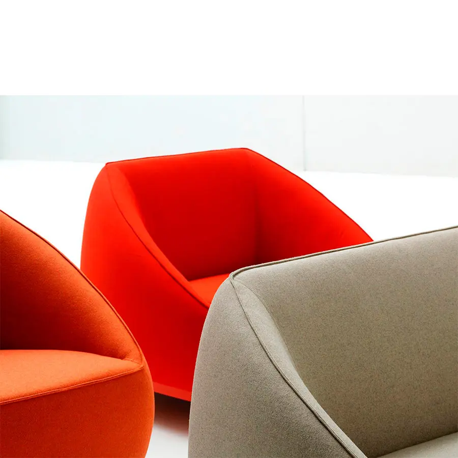 Clara y Alex trascienden el arquetipo de asiento para espacios públicos suavizando las formas. A pesar de su oronda presencia, Sumo ocupa un espacio muy reducido gracias a sus compactas dimensiones (178 y 92 centímetros para el sofá y el sillón respectivamente).