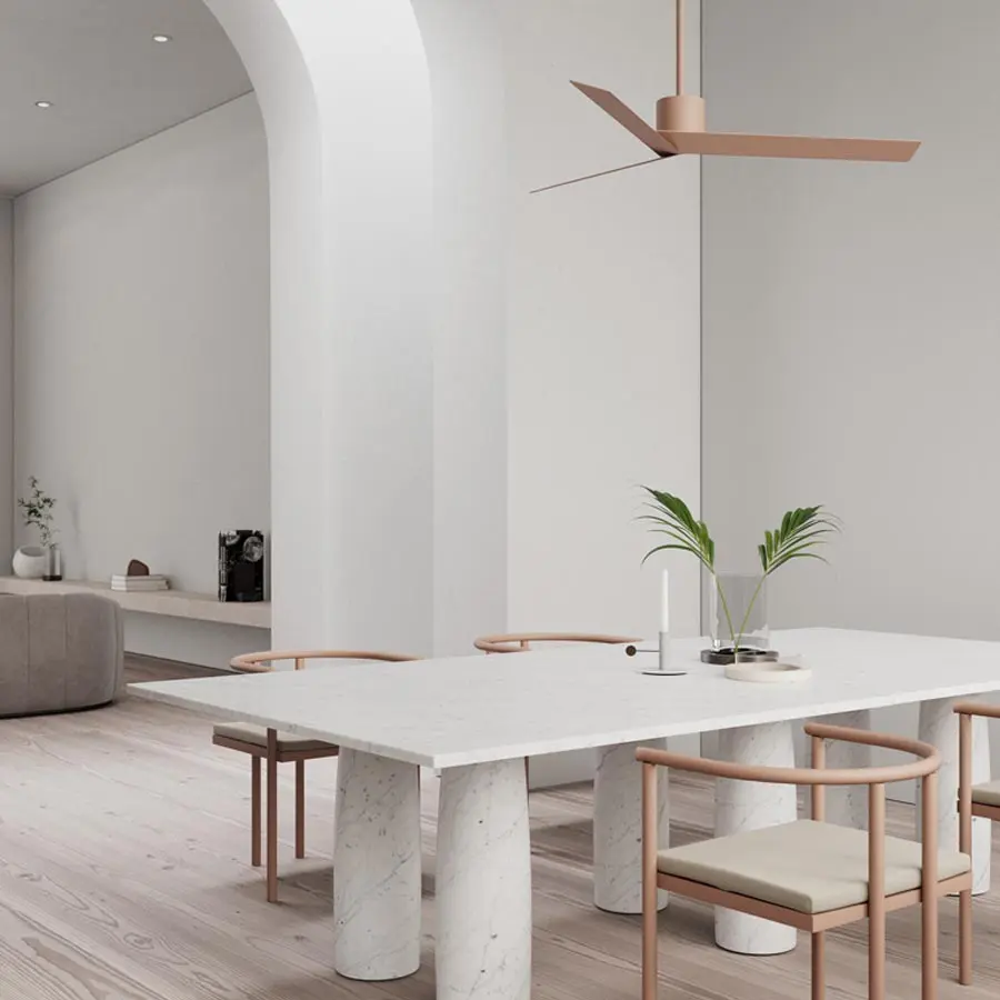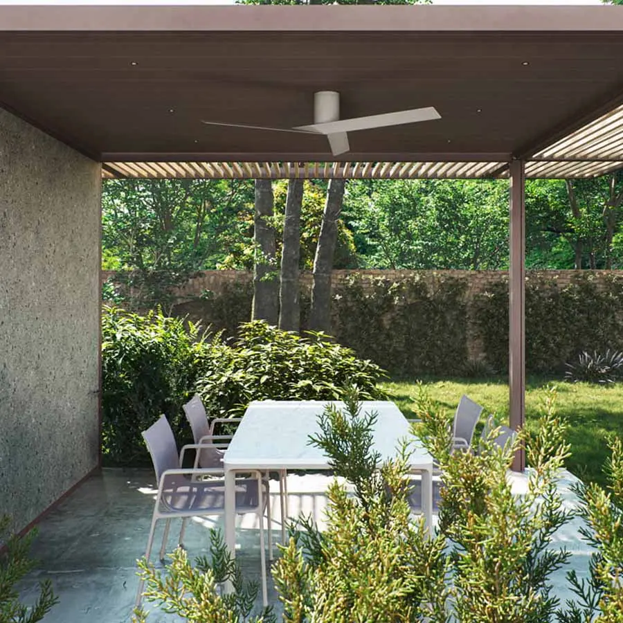 Las dos versiones del ventilador funcionan con igual eficiencia tanto con como sin colgante, ofreciendo flexibilidad de uso para diferentes alturas de techo.