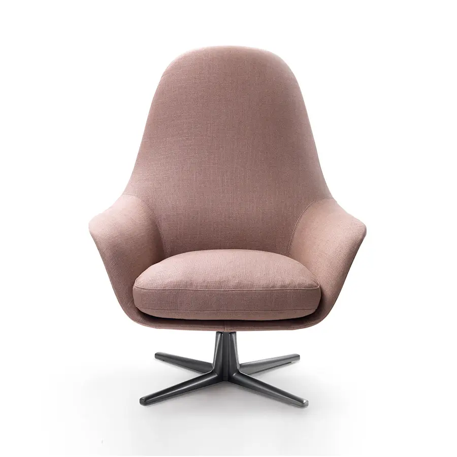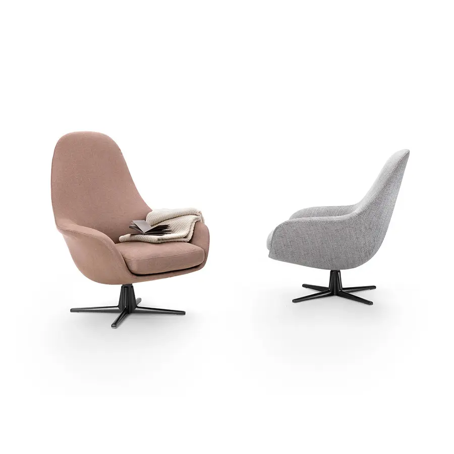 Las líneas sinuosas y envolventes que caracterizan el sillón Sveva con carcasa de cuero también pueden apreciarse en la versión totalmente acolchada llamada Sveva Soft. La suave carcasa acolchada está hecha de un material polimérico especial con notables propiedades estructurales que, junto con el cojín del asiento acolchado con plumón de ganso, garantiza una consistencia mullida y un alto nivel de confort. La base giratoria está fabricada en aluminio fundido a presión y se ofrece en versiones de cuatro o cinco radios, ambas disponibles en los acabados satinado, cromado, bruñido, cromo negro y champán. El sillón Sveva Soft es completamente desenfundable y también está disponible en la versión poltrona.
