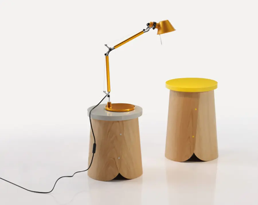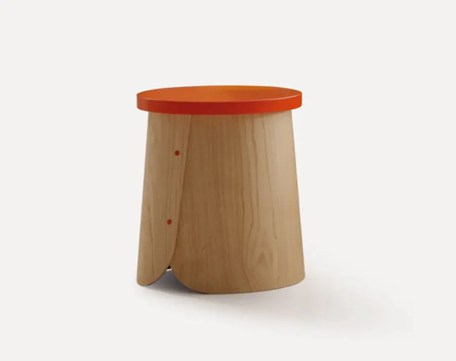 Isaac Piñeiro, del estudio Nadadora nos propone unas simpáticas banquetas y mesitas cuya base está inspirada en los trobos, unas colmenas hechas con troncos de madera, muy típicas en el norte de la Península Ibérica.