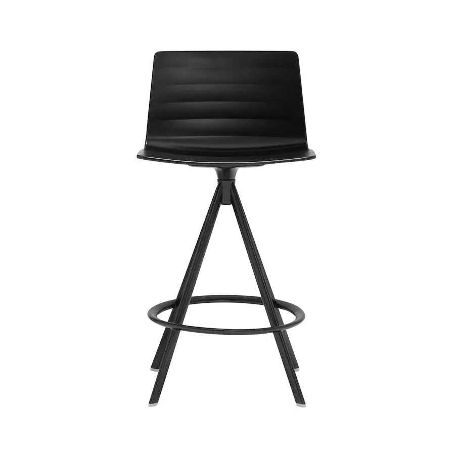 Esta versión de Flex está disponible con base de 4 patas de madera o acero, base central giratoria y base patín. Dos alturas de respaldo. La versatilidad de Flex se plasma en una gran diversidad de bases y de opciones de acabado para la carcasa –termopolímero, tapizados, plafonados. Esta oferta de posibilidades de configuración permite confeccionar un producto a medida de cada uso, de cada ambiente y proyecto.