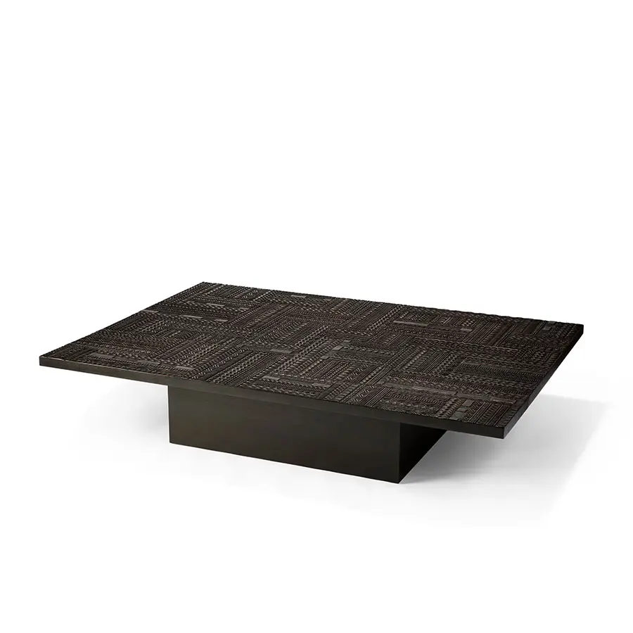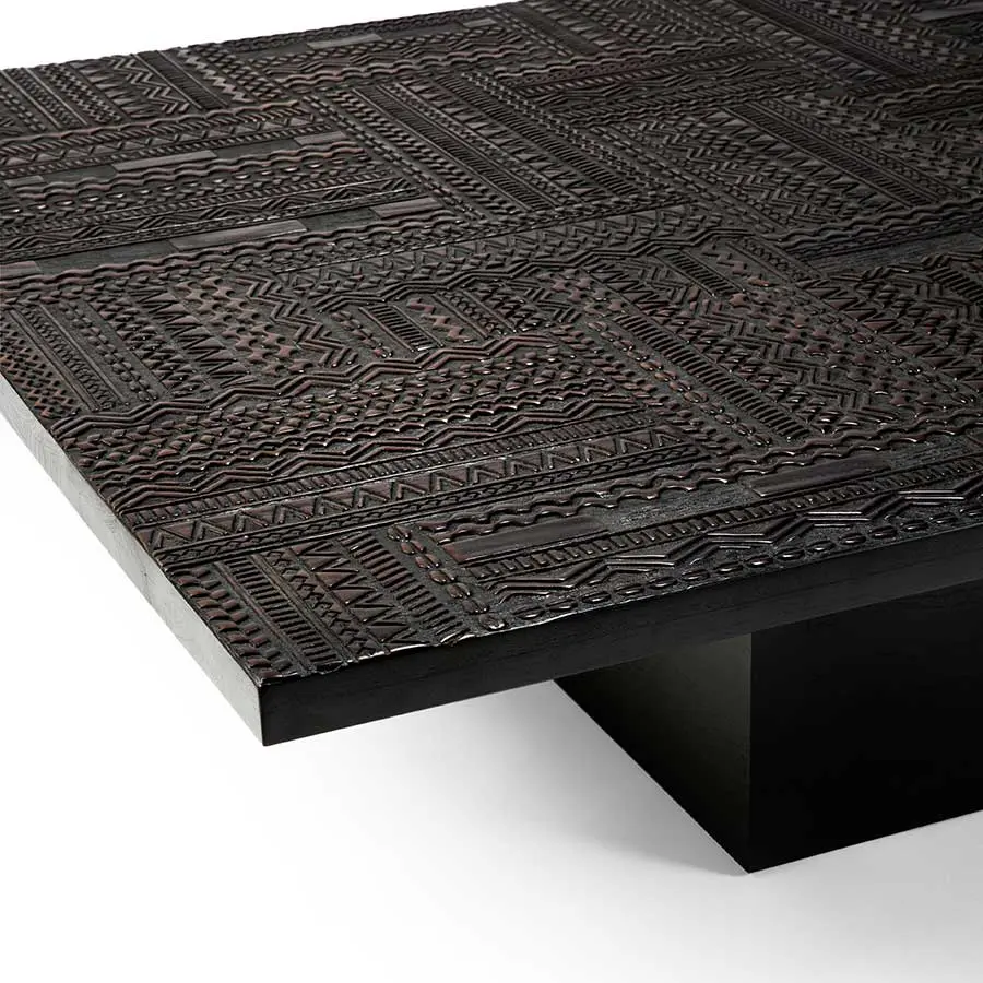 La colección Tabwa ofrece mesas de centro atemporales de silueta minimalista, pero con un carácter único y distinto. Los muebles de madera maciza se transforman en piezas de arte únicas donde cada patrón es cuidadosamente tallado por artesanos. La inspiración de esta colección proviene de la cultura Tabwa de África Central y su afición por los motivos geométricos lineales.