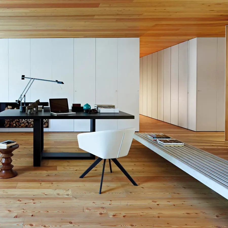 La colección de mesas Andreu World Tao con su parte superior de chapa de roble y base de madera maciza proyecta fuerza, elegancia y un sentido escultórico. Esta pieza única se ofrece en tres tamaños diferentes y en una amplia gama de acabados de madera. Tao está realizada con madera 100% responsable, procedente de bosques reforestados.