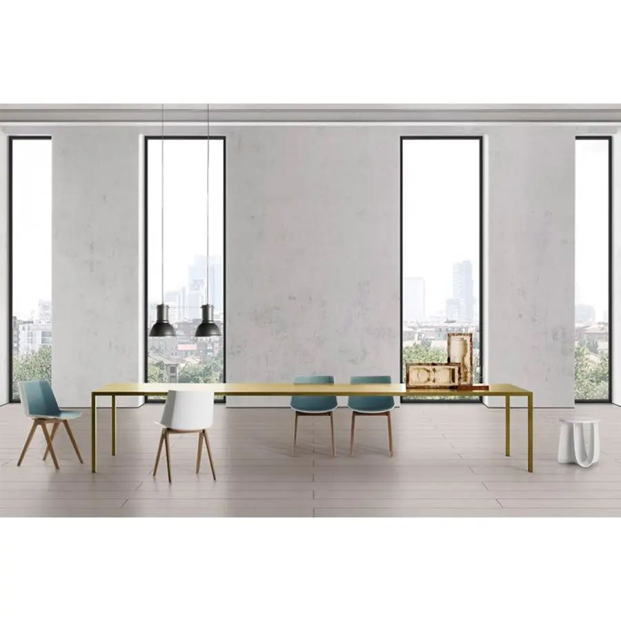 «Una belleza inteligente, resultante de un pensamiento y un saber hacer capaces de transmitir una emoción profunda a través de una sabia acentuación de las peculiaridades de los materiales utilizados». Piergiorgio Cazzaniga describe de esta manera Tense Material, una colección de mesas disponibles en 5 alturas y 36 tamaños, capaces de alcanzar grandes dimensiones, hasta 4 metros de largo, manteniendo siempre una tensión superior perfecta.
